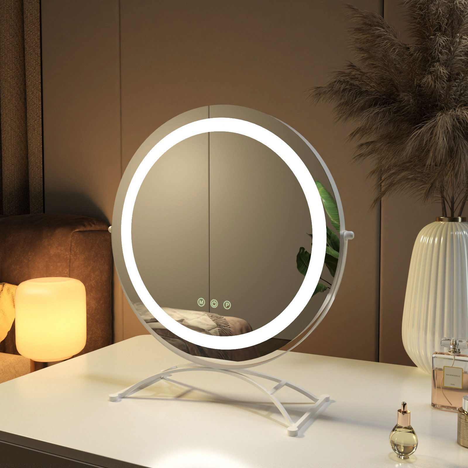 EMKE Schminkspiegel mit 3 Lichtfarben, Φ50CM Schminkspiegel mit Beleuchtung, Smart-Touch Schminktisch Spiegel mit Licht 360° drehbar, dimmbar und mit Memory-Funktion