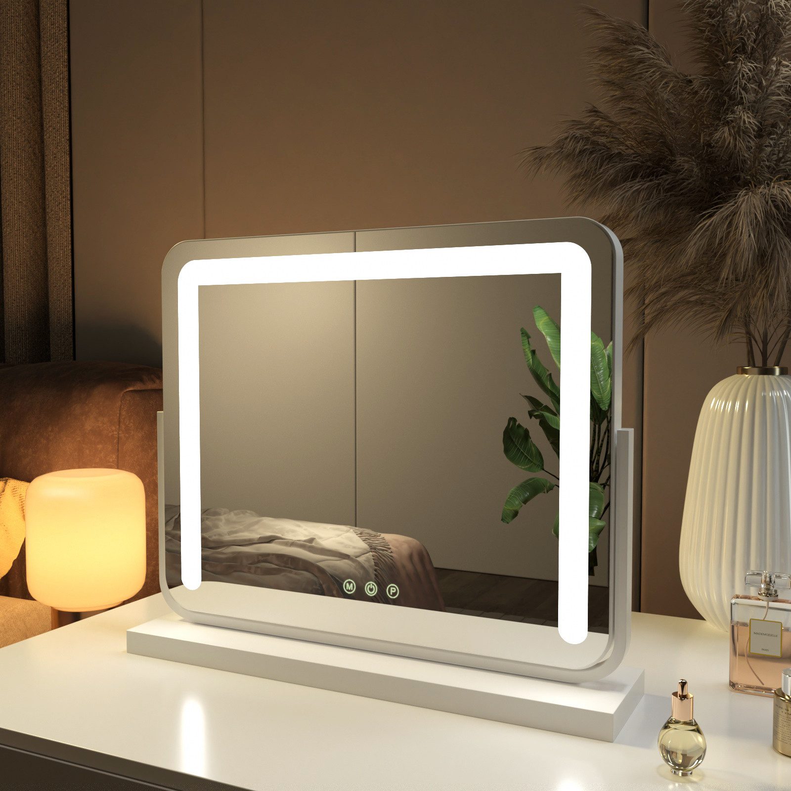 EMKE Spiegel mit 3 Lichtfarben Schminkspiegel mit Beleuchtung, Schminktisch Spiegel, kann aufgehängt Werden Kosmetikspiegel Einstellbare Helligkeit