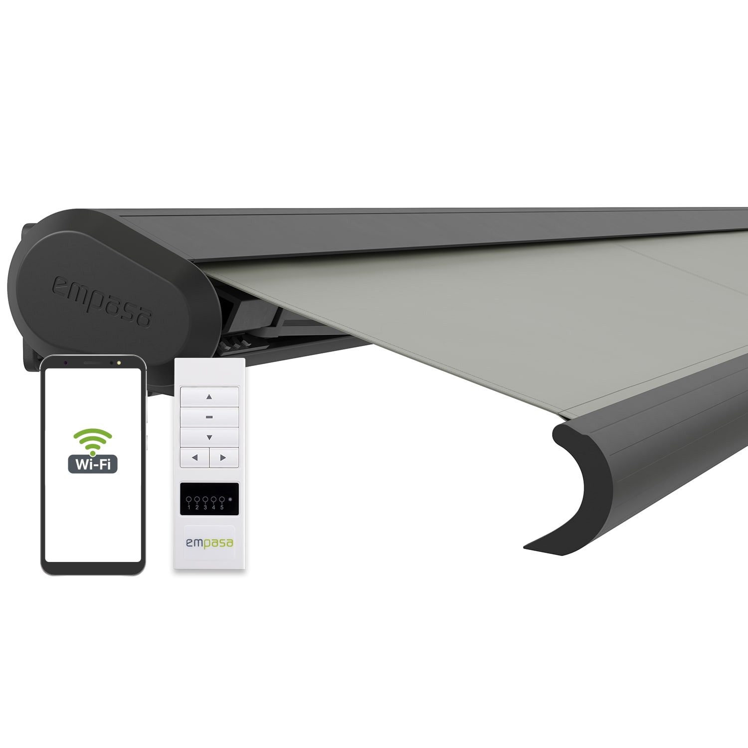 Der WiFi-Motor ermöglicht die Steuerung der Kassettenmarkise per mitgelieferter Fernbedienung, über das Handy per App oder per Sprachsteuerung! Das Besondere daran: Für die Steuerung benötigen Sie keinen zusätzlichen Hub! Die Verbindung zwischen Motor und WiFi-Netzwerk erfolgt direkt über die App.