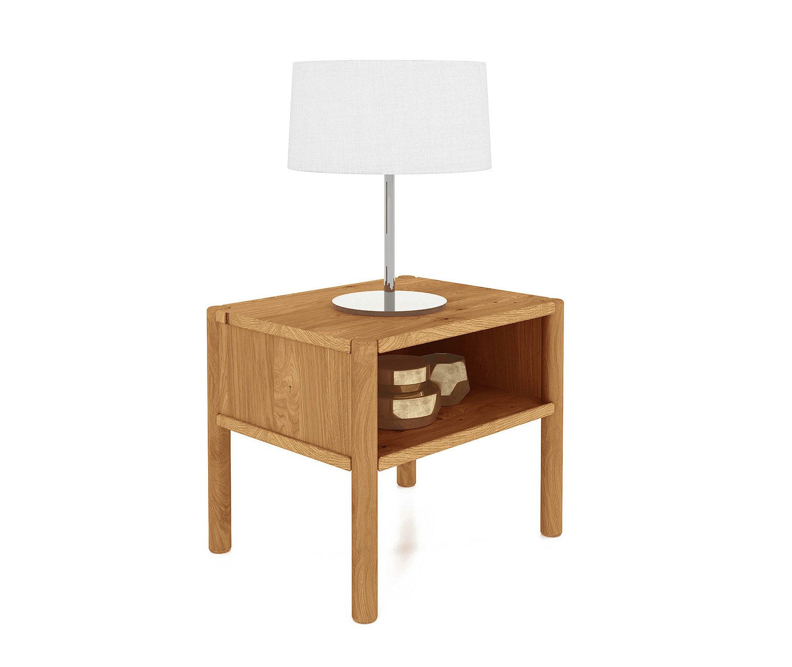 Der Nachttisch profitiert von der durchgehenden Lamellenverleimung, einer Technik, bei der längliche Holzstücke über ihre gesamte Длина verleimt werden. Diese Methode verbessert nicht nur die Stabilität und Haltbarkeit des Möbelstücks erheblich, sondern betont auch die natürliche Maserung des Holzes über die gesamte Fläche. Dadurch entsteht eine homogene Optik, die weniger anfällig für Beschädigungen ist.
