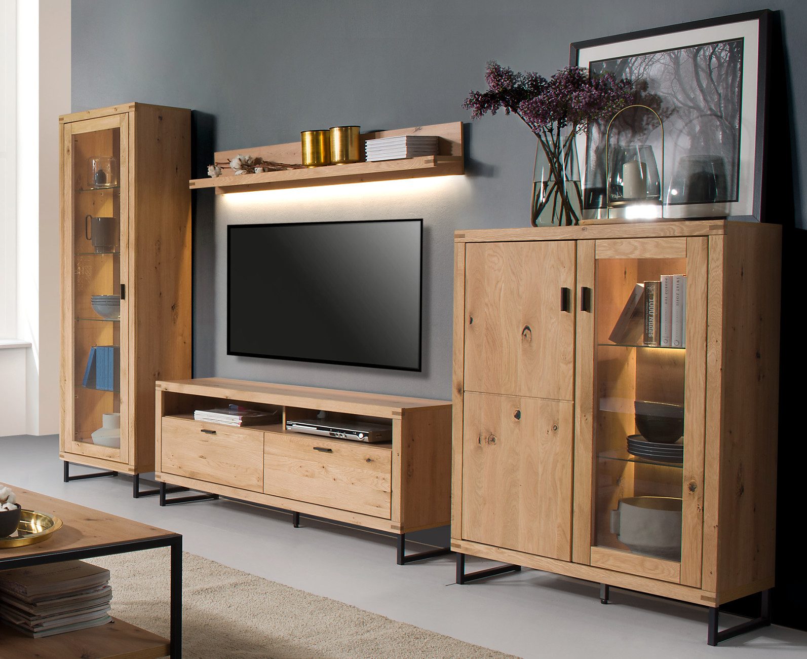 Set beinhaltet | Vitrine, TV-Lowboard, Highboard, Wandregal |