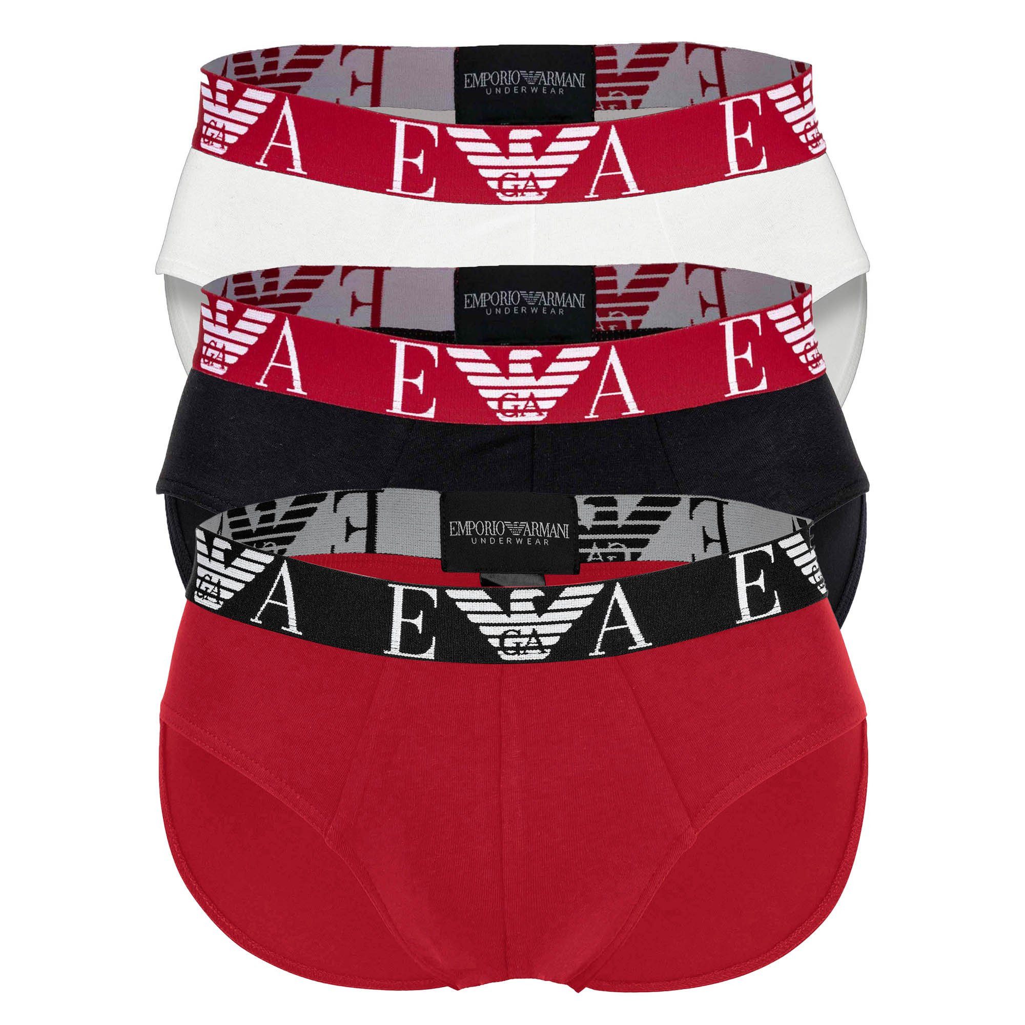 Elegante Herren Slips von der Marke EMPORIO ARMANI. Hochwertige Unterwäsche für den alltäglichen Bedarf. Mit Logobund, im praktischen 3er Pack.