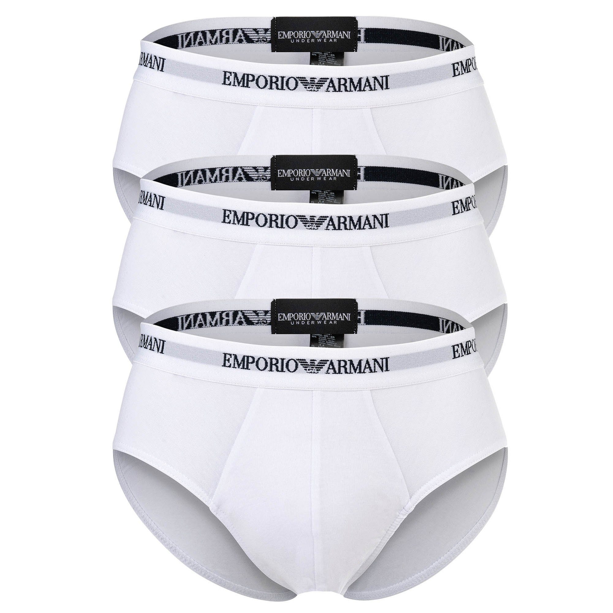 Elegante Herren Slips von der Marke EMPORIO ARMANI. Hochwertige Unterwäsche für den alltäglichen Bedarf. Mit Logobund, im praktischen 3er Pack.