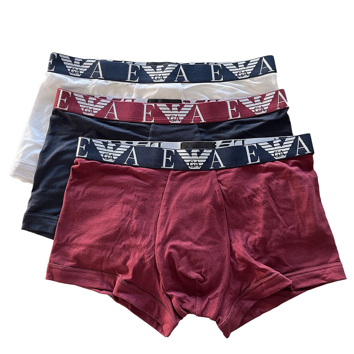 Emporio Armani, Trunk (Slipboxer) im 3er Pack (Serie Stretch Cotton) // Artikeldetails: / - figurnaher Schnitt, sitzt auf der Hüfte / - kurzes Bein / - weicher Softbund / - Logo im Bund eingewebt, Logogestaltung und -anordnung - siehe Artikelfoto / - Material: 95% Baumwolle, 5% Elasthan - Stretch Cotton / Farbvarianten: - WHITE/MARIN/BURGUNDY (13911) - 1x Weiss/Bund Marine, 1x Marineblau/Bund Rot, 1x Burgunderrot/ Bund Marine --- - BLACK/BLACK/BLACK (73320) - 3xSchwarz mit Bund je 1x Orange, 1x Gelb, 1x Blau --- - RED/STONE/BLACK (41074) - 1x Rot/Bund Schwarz, 1x Grau/Bund Schwarz, 1x Schwarz/Bund Schwarz --- Emporio Armani - für moderne, anspruchsvollste Männer, die keine Kompromisse eingehen wollen