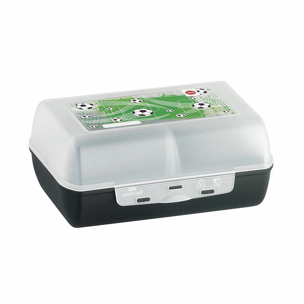 Lieferumfang | 1 Emsa Variabolo Soccer, Brotdose, Brotbox, Kinderdose, Lunchbox, Trennwand, Schwarz, 7 cm, 516991 |