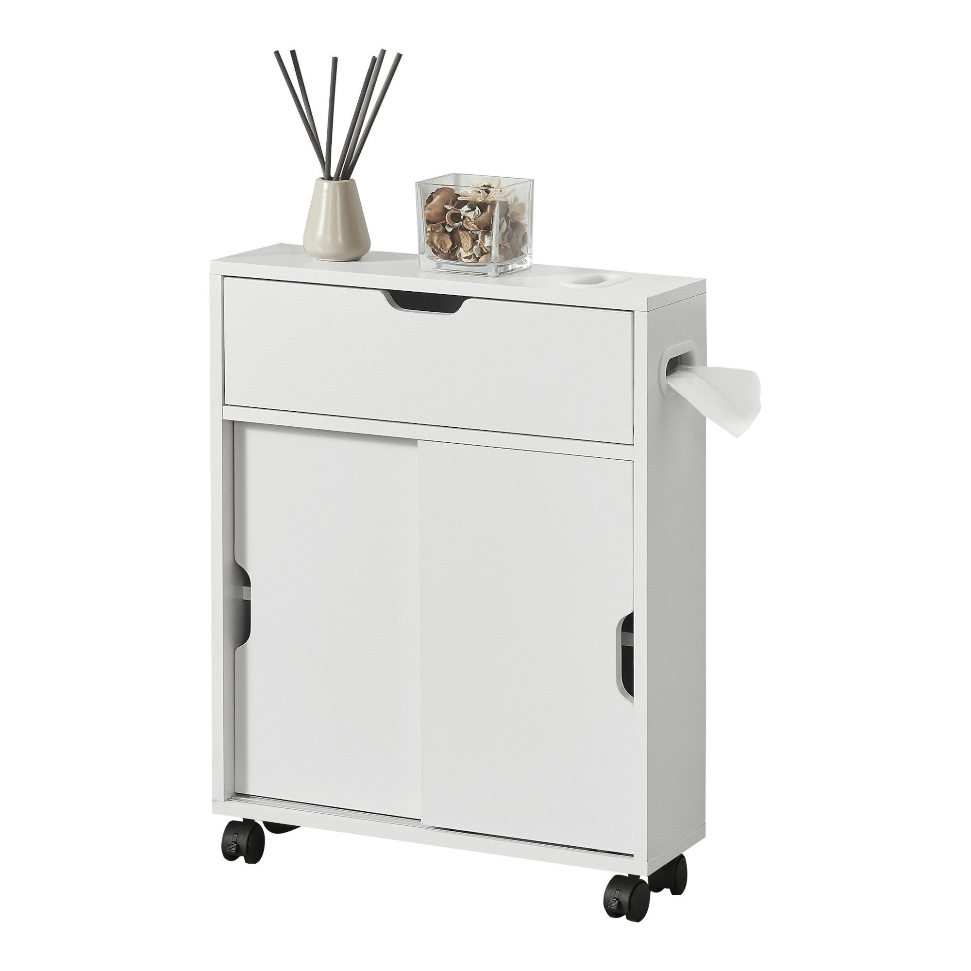Der schmale und platzsparende Mehrzweckschrank bietet zahlreiche Möglichkeiten zum Verstauen sämtlicher Gegenstände. Er eignet sich bspw. ideal für Ihr Badezimmer, Ihre Küche oder Ihr Wohnzimmer. Durch die 4 Rollen lässt er sich schnell und einfach hin- und herschieben.