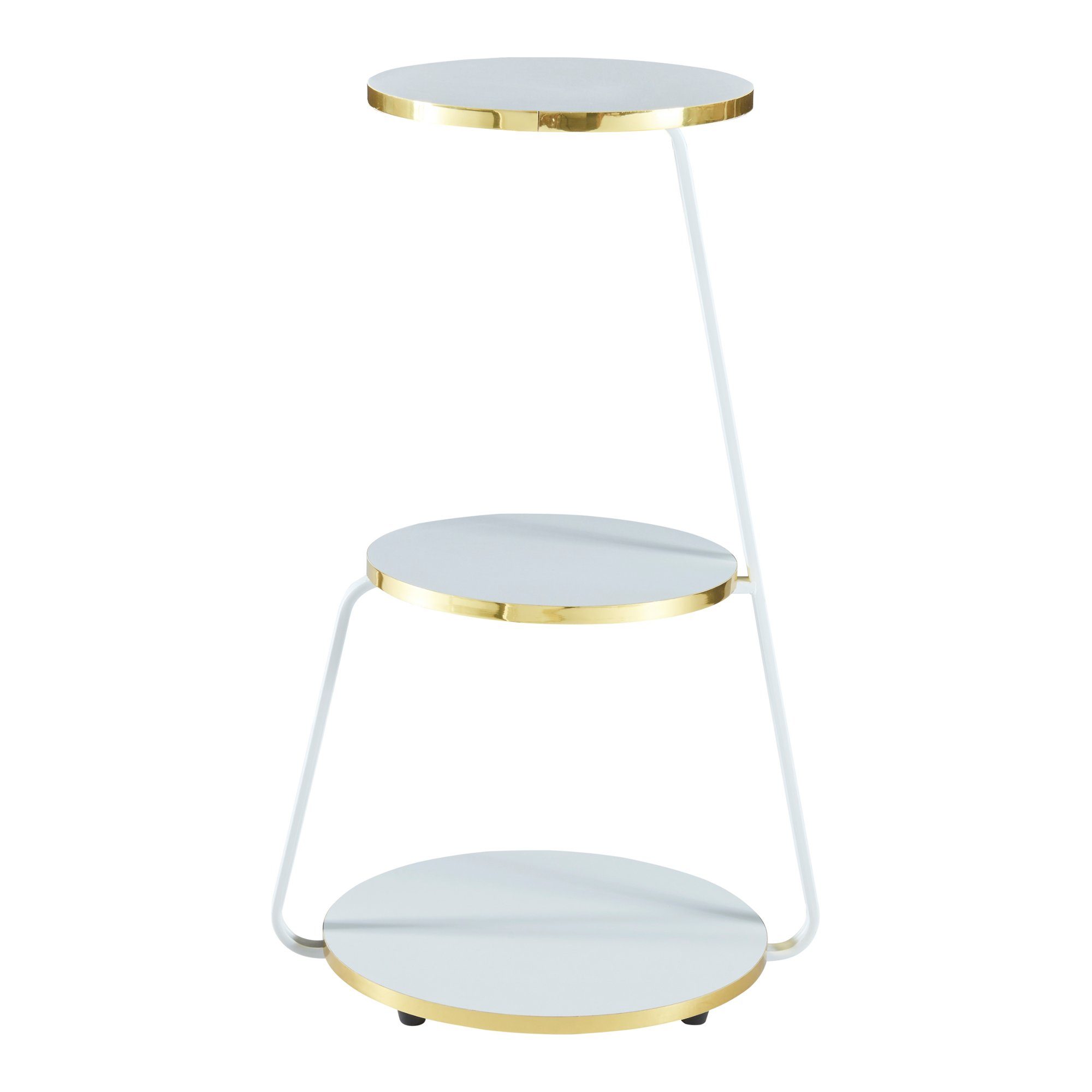 Dieser ausgefallene Beistelltisch ist vielseitig einsetzbar. Mit seinem zeitlosen Design passt er bspw. perfekt in Ihr Wohnzimmer. Der Tisch verfügt über insgesamt 3 Ablageflächen.