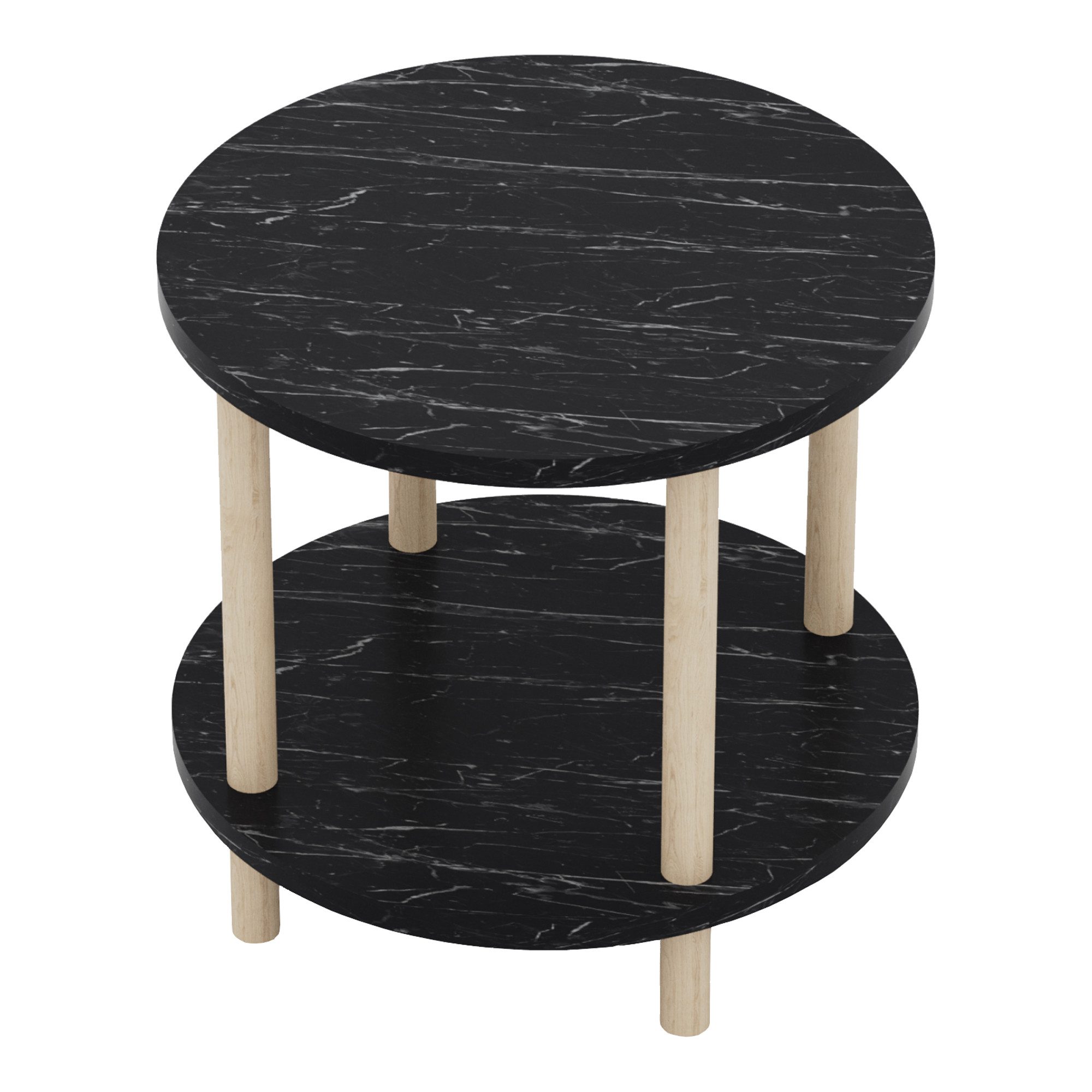 - Tischplatte + Ablage: Marmoroptik, schwarz