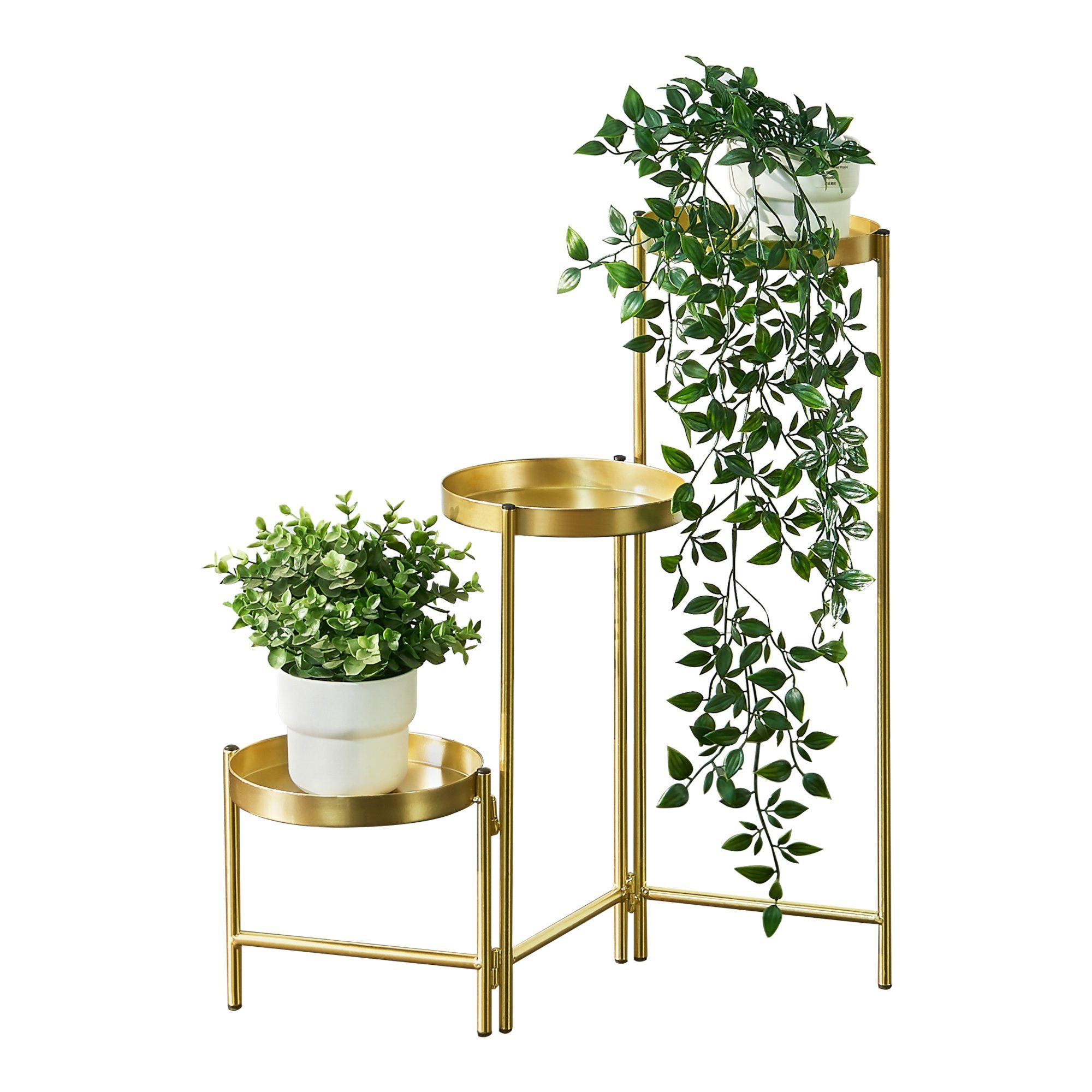 Dieser ausgefallene Pflanzständer mit 3 Pflanzschalen aus Metall ist klappbar und dadurch sehr platzsparend. Durch sein zeitloses und dekoratives Design ist er ein echter Hingucker in Ihrem Wohnbereich.