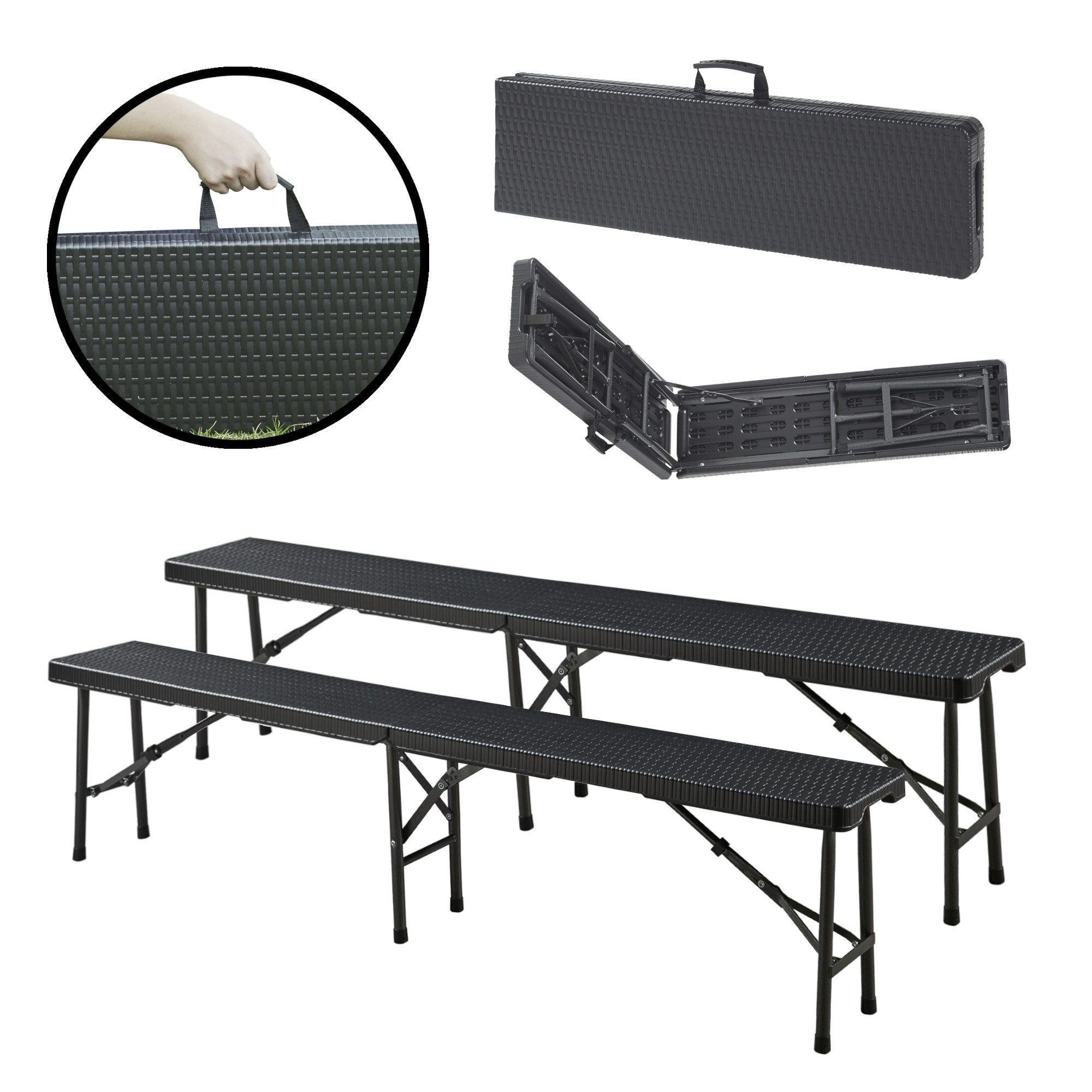 Die zwei Klappbänke sind eine hervorragende Ergänzung für jeden Außenbereich und eignen sich ideal für Picknicks, Festivalbesuche oder Veranstaltungen im Freien. Ihre Robustheit und Wetterbeständigkeit machen sie zum perfekten Begleiter für alle Arten von Outdoor-Aktivitäten.