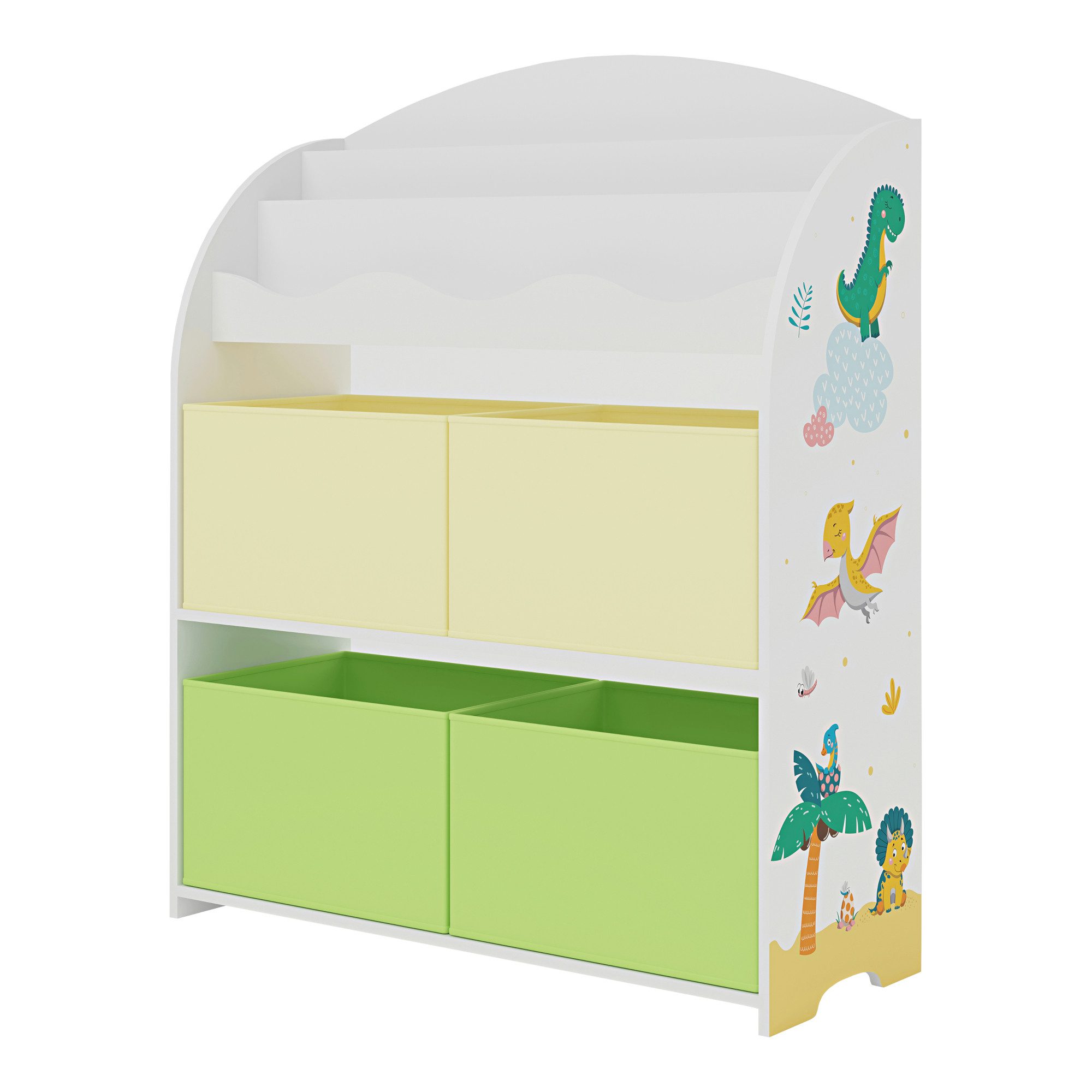 Das Kinderregal bietet mit seinen drei offenen Ablagefächern und vier unteren Aufbewahrungsboxen genügend Platz für die Schätze Ihres Kindes. Die verzierten Seitenwände und das ansprechende Motiv machen es zu einem echten Hingucker in jedem Kinderzimmer.