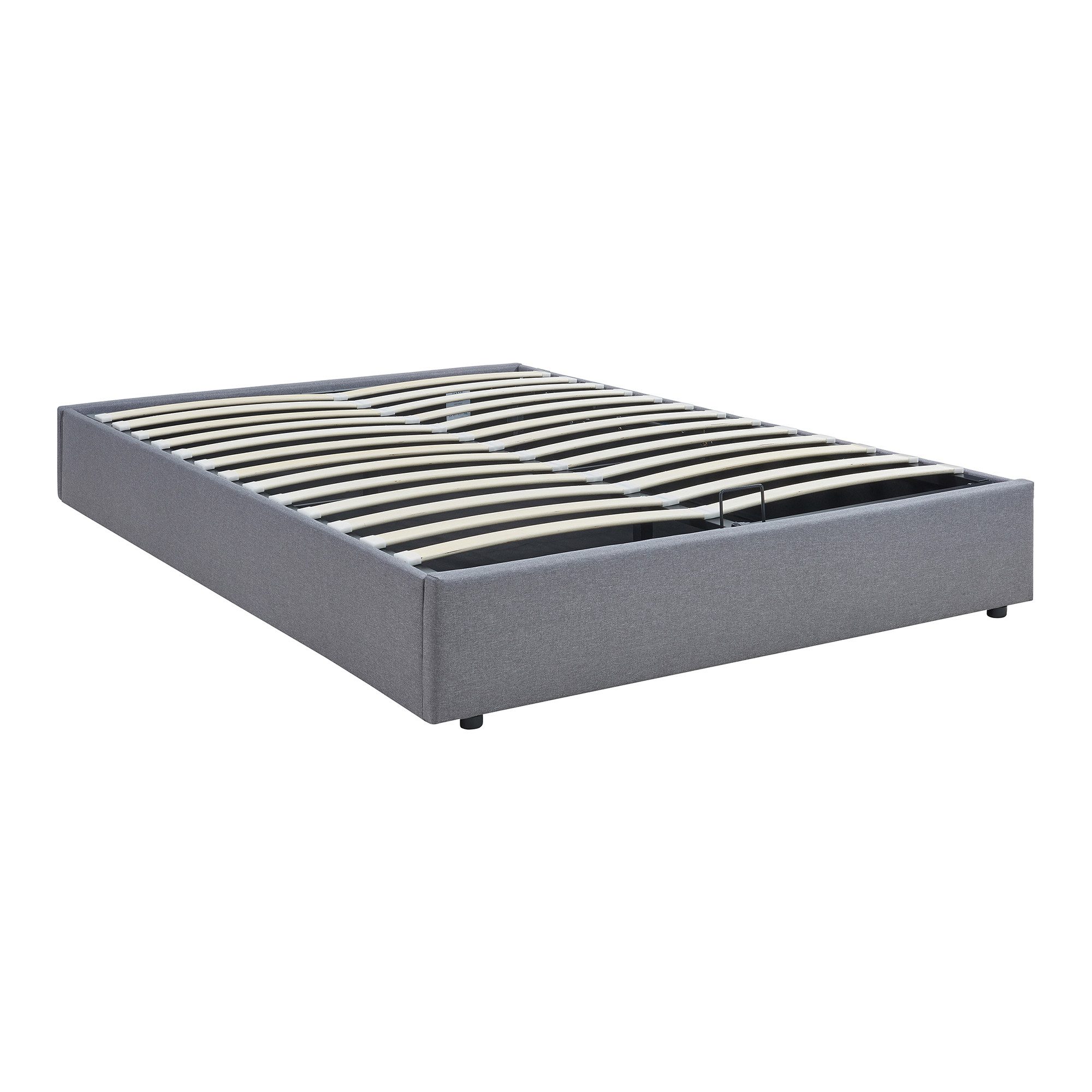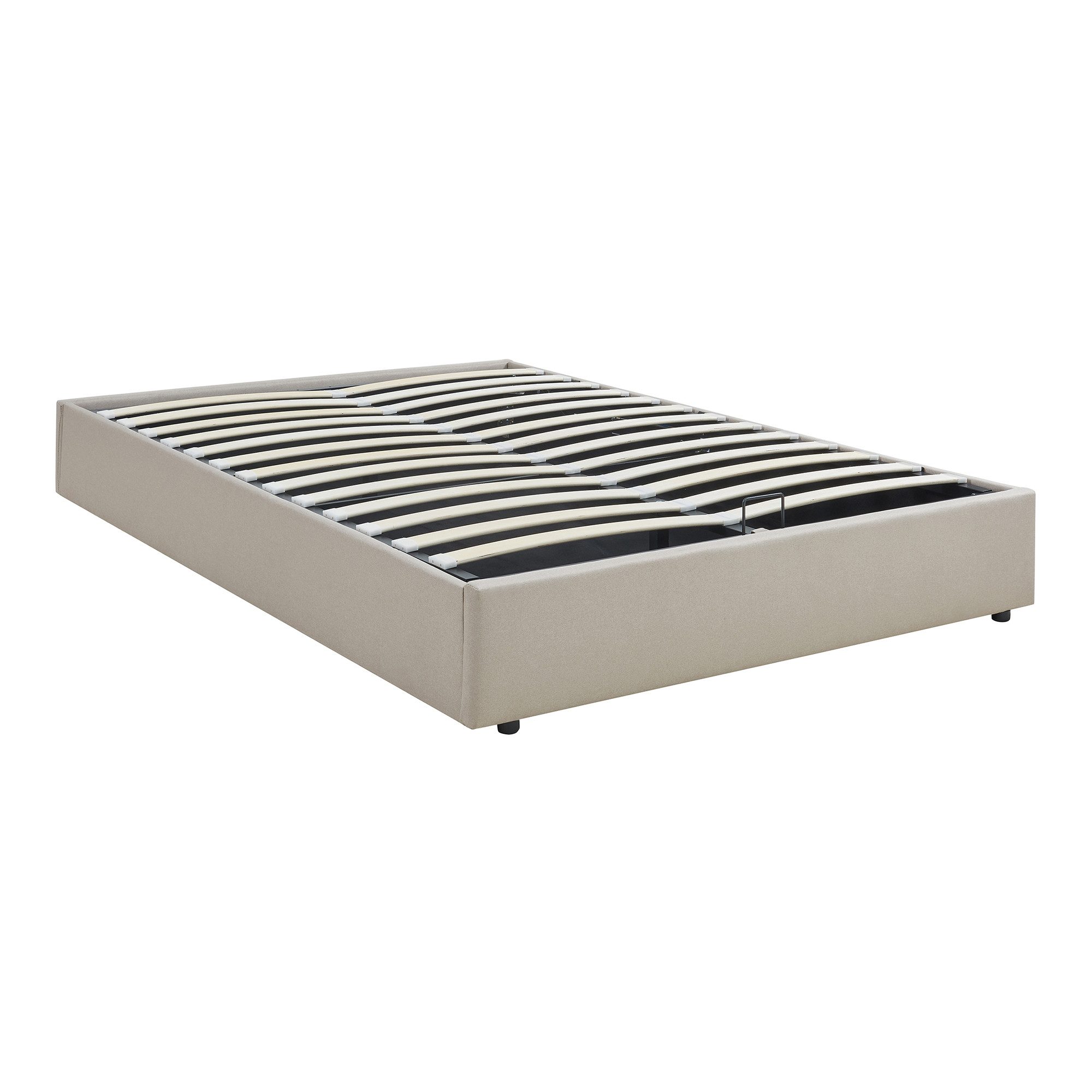 Der großzügige Bettkasten unter dem tragfähigen, aufklappbaren Lattenrost dient als praktischer Stauraum für Bettwäsche, Kissen und andere Gegenstände. Mithilfe von Gasdruckfedern und einem handlichen Griff lässt sich der Lattenrost mühelos anheben. Diese Konstruktion verleiht der Matratze eine stabile Grundlage und unterstützt einen tiefen, erholsamen Schlaf.