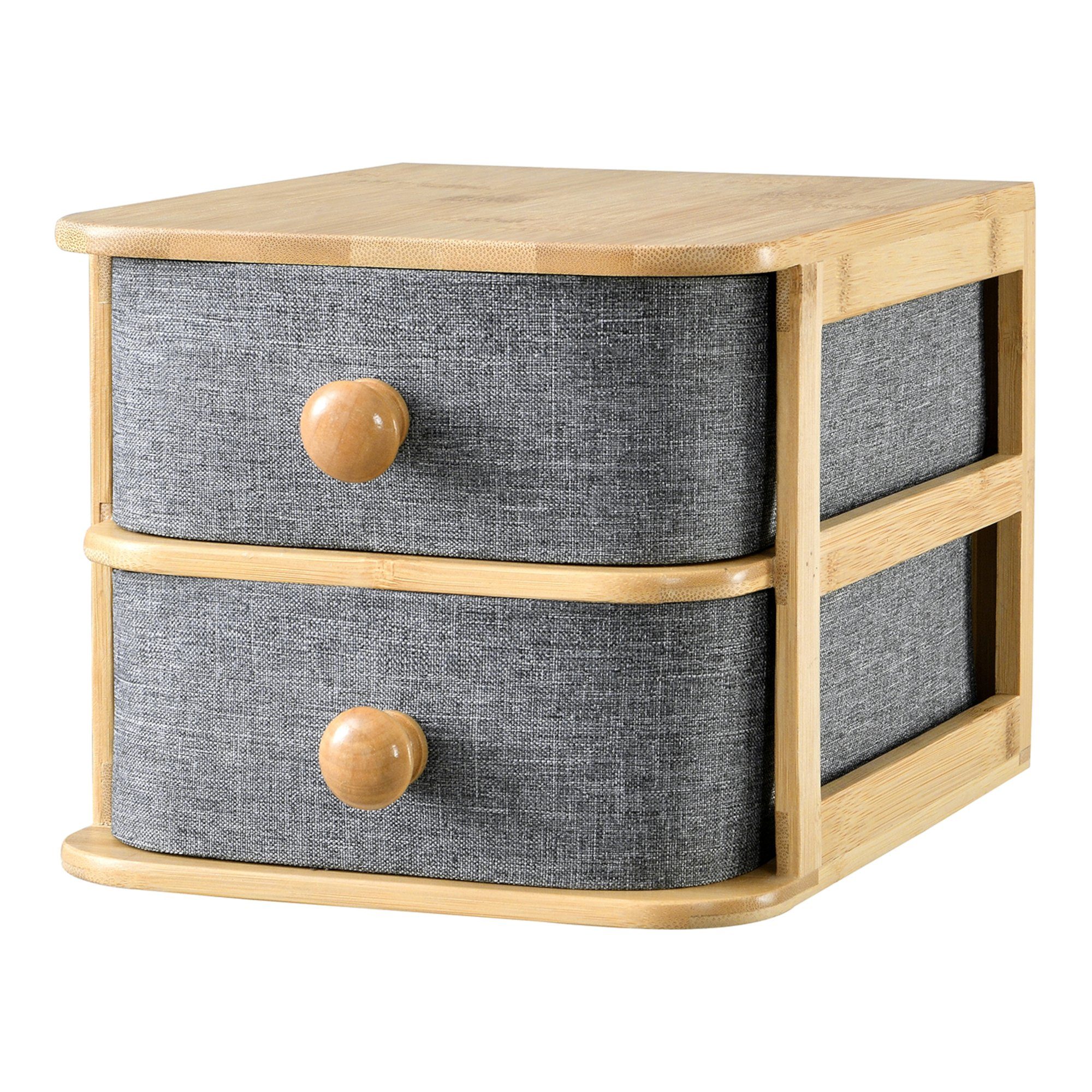 Mit dieser praktischen Schubladenbox sorgen Sie für Ordnung und Übersicht auf Ihrem Schreibtisch. Der Tischorganizer verfügt über 2 Schubfächer, zum Verstauen von bpsw. Stiften, Scheren, Kleber und sämtlichen anderen Büroutensilien. Natürlich können auch Make-Up Produkte, Schmuck oder andere Gegenstände platzsparend verstaut werden.