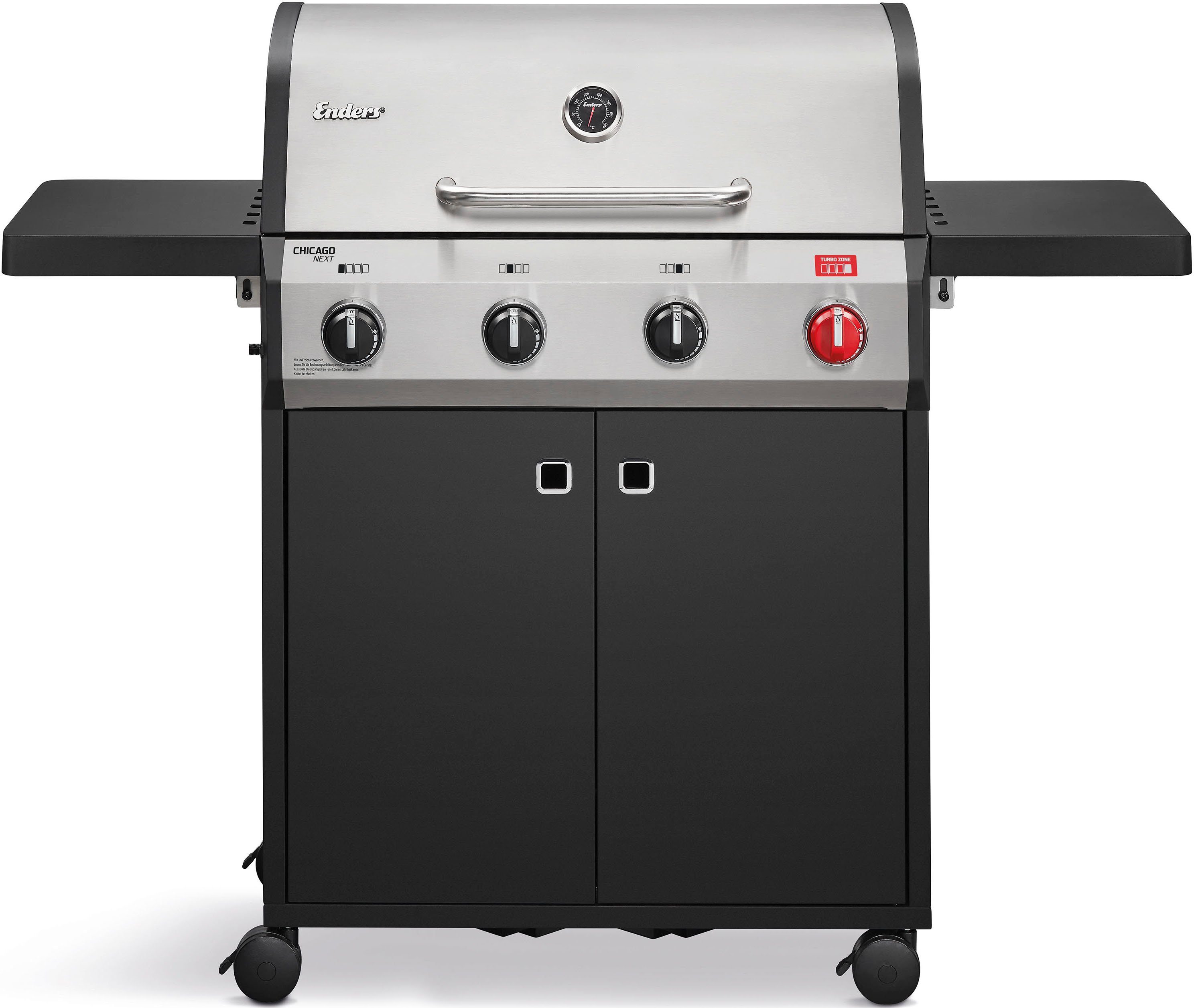 Einer für alles. Всеs in einem. BBQs der CHICAGO NEXT-Serie sind vollgepackte Grillrounder, mit denen du dich köstlich amüsierst. Sowohl die Dreibrenner-Modelle als auch das Vierbrenner-Modell verfügen über einen emaillierten Gussrost. Вперед unten im 3 R und 4 R Turbo schlummert die TURBO ZONE™, mit der du turboschnell Höchsttemperaturen an der Grillfläche erreichst. Für etwas, "Abkühlung" sorgt hingegen der Warmhalterost aus rostfreiem Edelstahl. Abgerundet wird der Grillrounder vom SWITCH GRID™-System, das den Einsatz von Sear Grate, Pizzastein, Pfanne, Geflügelbräter oder Dutch Oven ermöglicht, sowie durch zwei klappbaren Seitenablagen.