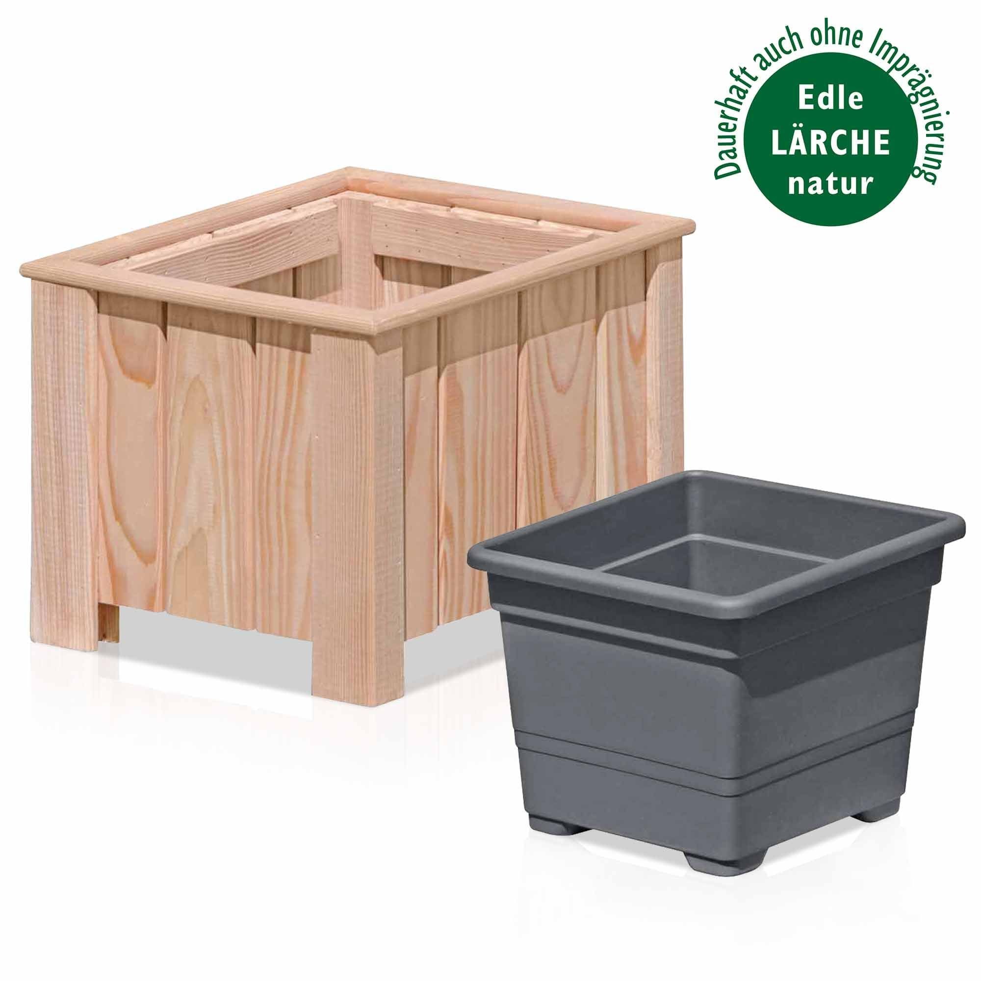 Maße: 38 x 38 x 30cm 1x Kunststoffeinsatz inklusive Holz: Lärche