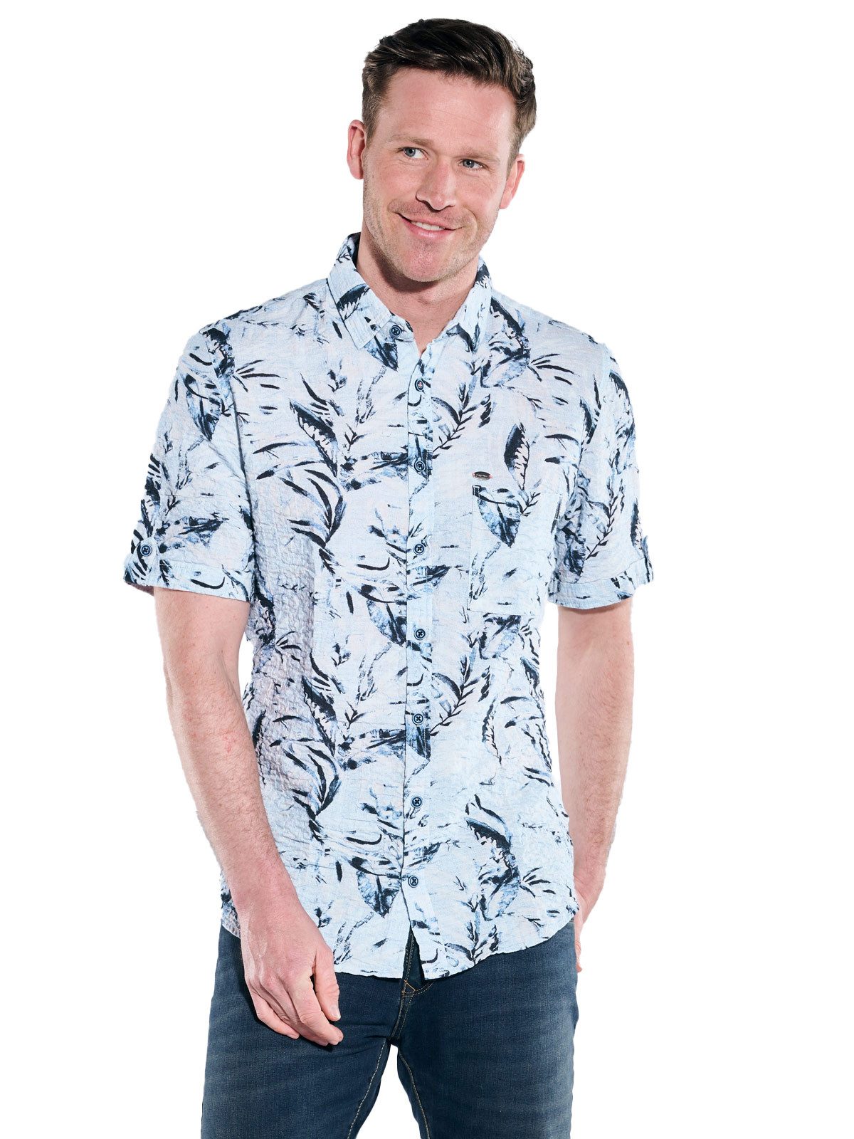 Kurzarmhemd engbers Herren Kurzarm-Hemd gemustert, Brilliantblau
