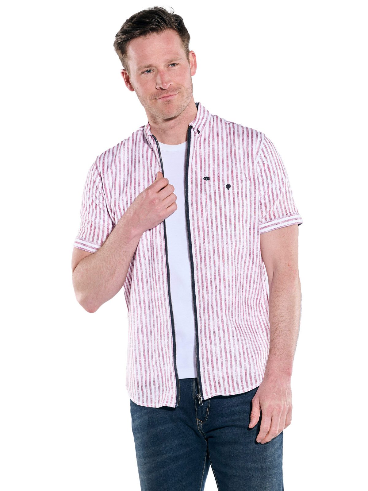 Dieses Kurzarmhemd bringt Leichtigkeit und Tragekomfort perfekt auf den Punkt. Die strukturierte Warenqualität fühlt sich angenehm auf der Haut an und sorgt gleichzeitig für einen markanten Look. Ein sportives Detail: Der praktische Reißverschluss auf der Front verleiht dem Hemd einen lässigen Charakter und hebt es stilvoll von klassischen Вариантыn ab. Ob entspannt zur Jeans, sommerlich zur leichten Chino oder smart unter einem offenen Sakko – dieses Hemd lässt sich vielseitig kombinieren und passt ideal zu unkomplizierten Freizeit-Looks mit sportivem Anspruch. Ein authentisches Lieblingsstück für Männer, die es bequem und gleichzeitig stilbewusst mögen.