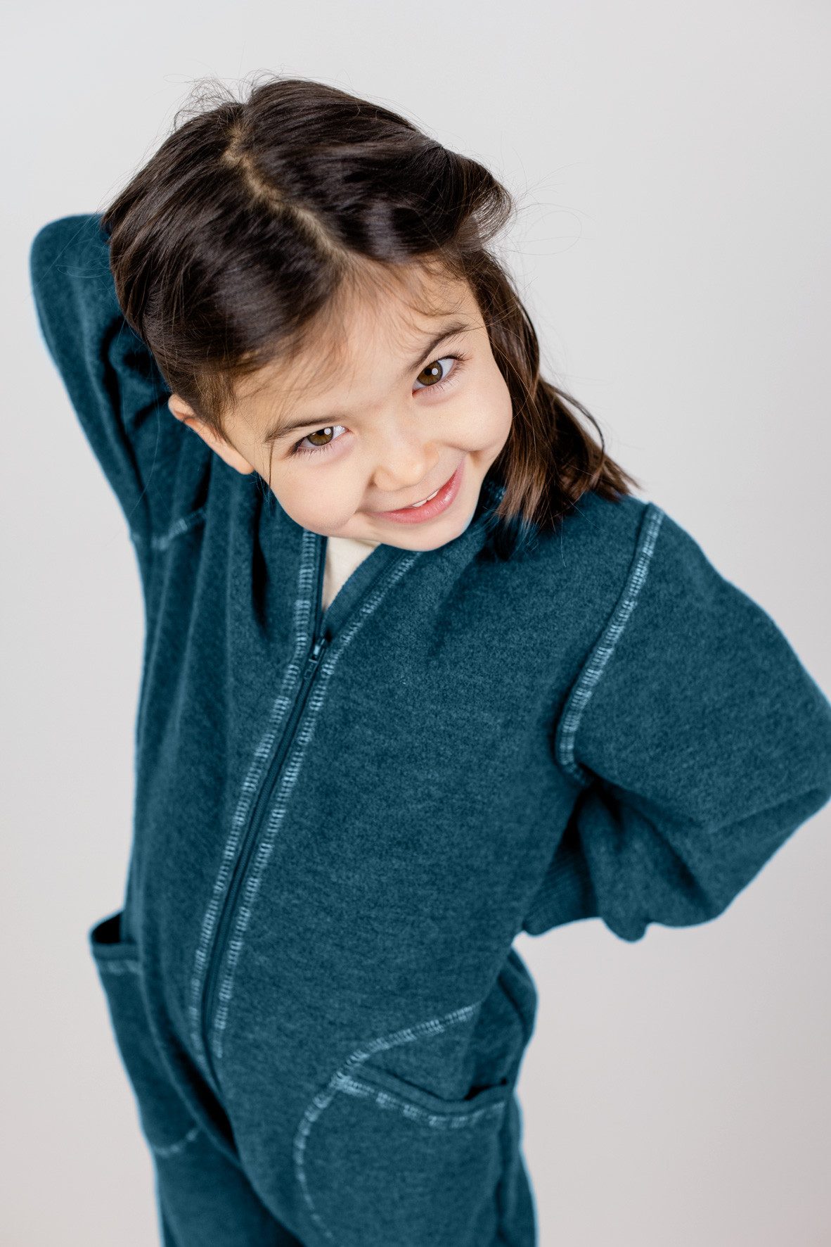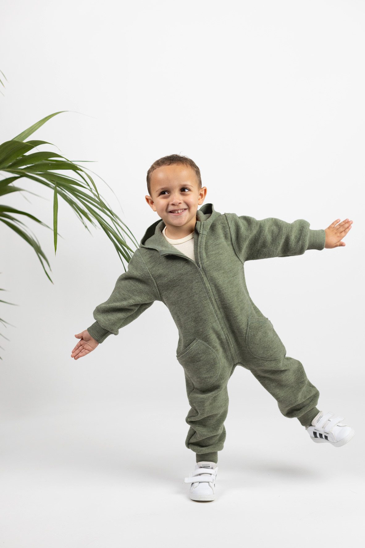 Der Baby-Walk-Overall aus 100% Bio-Merinoschurwolle (kbT) mit Kapuze ist der Allrounder in der kalten Jahreszeit. Walk speichert die Wärme und hält rundum warm - perfekt für kleine Abenteurer*innen, die gern im Freien unterwegs sind! Die großen Taschen an den Seiten bieten ausreichend Platz für Steine und Co.. Die Bündchen an den Handgelenken und Beinenden schützen zusätzlich vor kaltem Wind. Mit dem Reißverschluss sind die Kleinen in Sekundenschnelle startklar, wenn's nach draußen gehen soll. Jetzt auch in den neuen Farben Salbeigrün-, Rose- und Mandel-Melange erhältlich.