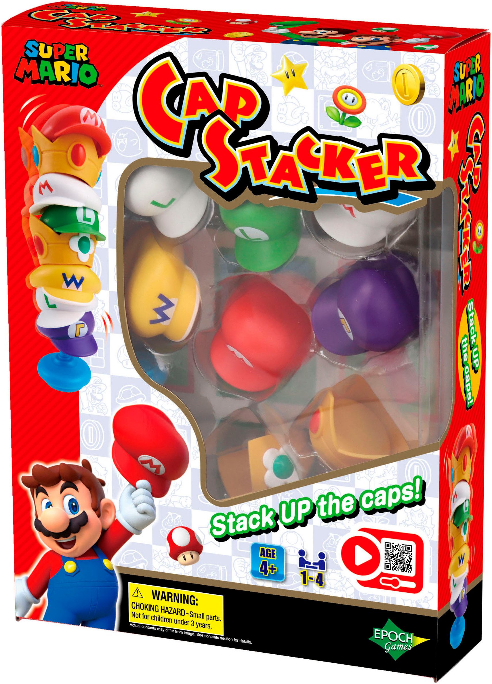 Inhalt | 1 Ständer, 1 Ständer-Unterteil, 12 Karte, Je 1 Mütze (Mario, Luigi, Feuer-Mario, Feuer-Luigi, Wario, Waluigi, Peach, Daisy) |