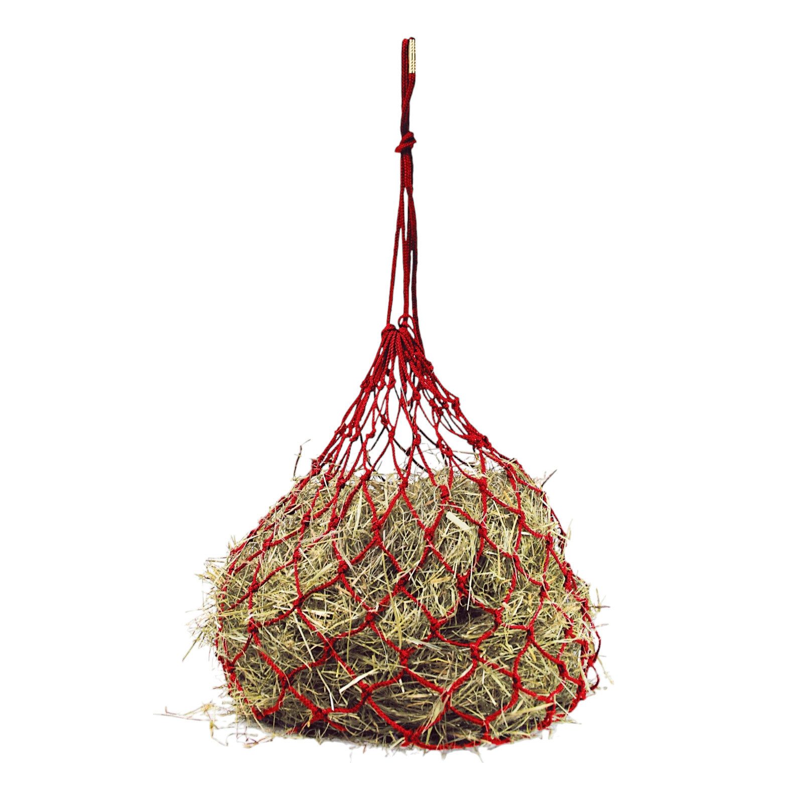 Das antibakterielle Heunetz ist aus strapazierfähiger 4 mm Polypropylenkordel geknotet. Das Material hat eine sehr geringe Wasseraufnahme und saugt sich nicht voll, wenn es mit Wasser in Kontakt kommt. Es ist sehr platzsparend zu verstauen und damit ideal für unterwegs.