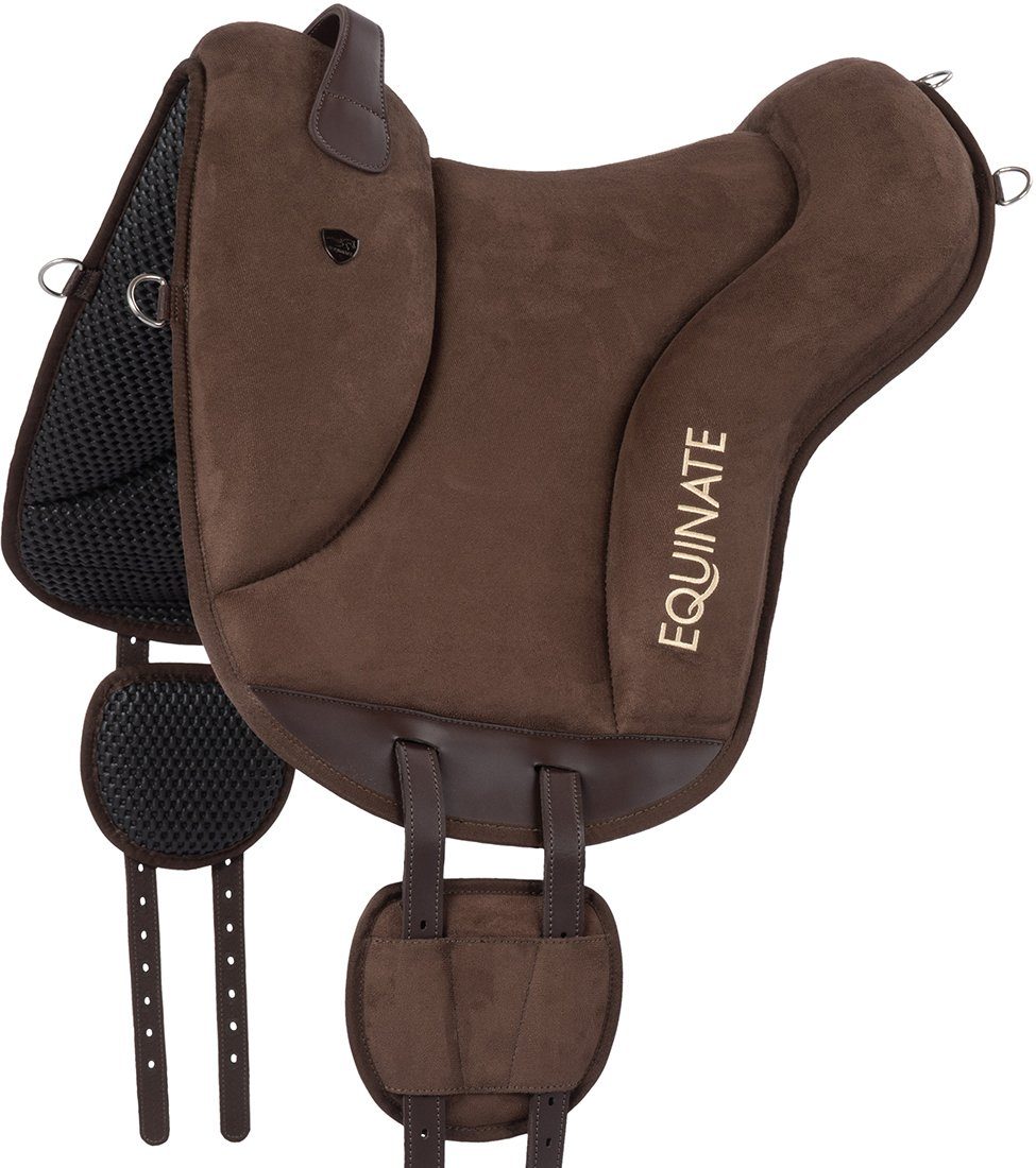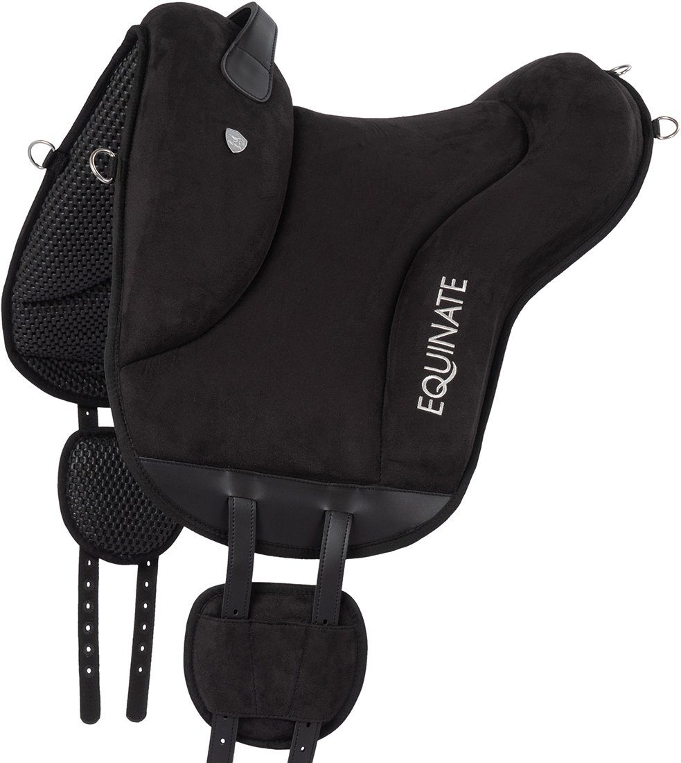 Das Newfield Reitpad ist mit fünf rostfreien D-Ringen ausgestattet, zwei im vorderen und drei im hinteren Bereich. Diese bieten vielseitige Befestigungsmöglichkeiten für Zubehör. Ein filigran gesticktes Equinate Logo verleiht dem Pad eine elegante Note und unterstreicht die detailverliebte Verarbeitung.