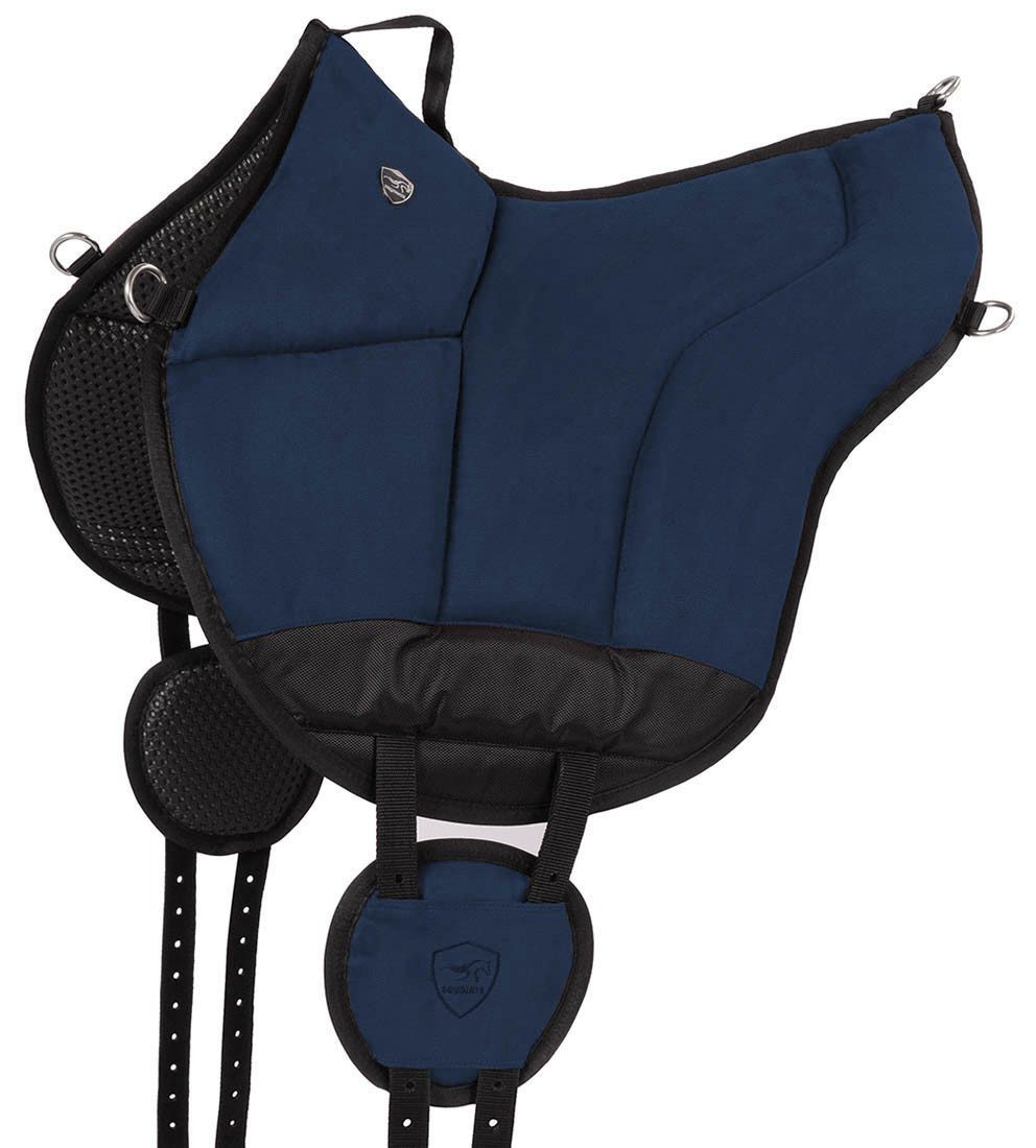 Das Reitpad Toledo bietet ein angenehmes “ohne-Sattel” Reitgefühl. Seine sehr weiche Oberseite besteht aus pflegeleichter Mikrofaser. Die mit Neopren beschichtete Unterseite ist atmungsaktiv, druckbeständig, schlagabsorbierend und verfügt zugleich über einen Anti-Rutsch-Effekt. Durch die anatomische Form ist auch für einen ausgeprägten Widerrist ausreichend Platz. Die dezent gehaltene, flache Polsterung schafft maximale Bewegungsfreiheit für Reiter und Pferd und ermöglicht das Reiten mit feinsten Gewichtshilfen. Dank der Flexibilität passt sich das Pad individuell dem Pferderücken an. Die langen Gurtstrupfen werden beidseitig durch Patches stabilisiert. Je nach Gurtlänge bzw. Размер des Pferdes/Ponys können diese aber auch weggelassen werden.