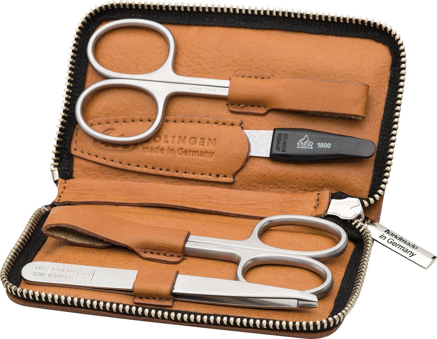 Besondere Merkmale | Hochwertiges Maniküre-Etui aus Rindleder mit Solinger Instrumenten. |