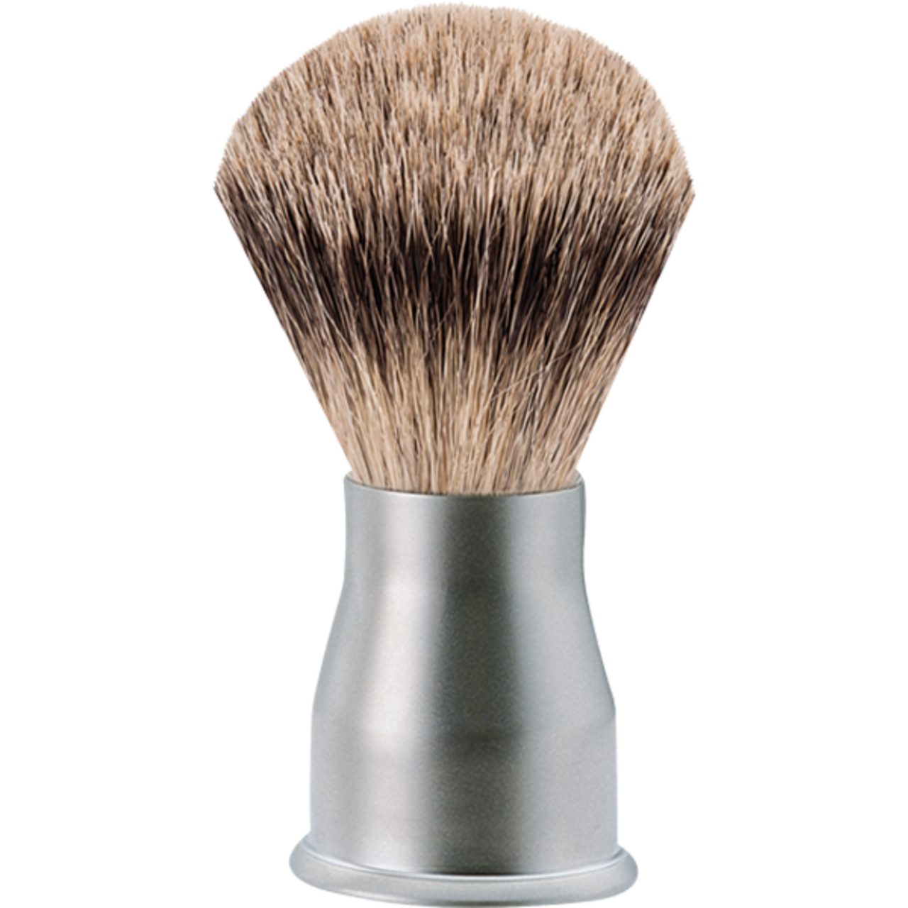 Der handgefertigte ERBE Rasierpinsel aus luxuriösem, handverlesenem Silberspitz-Dachshaar bietet eine ideale Schaumbildung und angenehme Weichheit beim Schlagen und Auftragen des Rasierschaums. Ein besonderes Merkmal ist die silbern schimmernde Färbung mit einem schwarzen Band. Geeignet ist er für sehr empfindliche und zu Irritationen neigender Haut.Der Pinselgriff ist aus matt veredeltem Metall hergestellt in langlebiger Qualität. Der Pinsel ist mit einer feinen Imprägnierung versehen. Vor der ersten Rasur gründlich mit Wasser ausspülen. Nach der Anwendung den Pinsel ebenfalls sorgfältig mit Wasser reinigen und ausschlagen. Made in Italy