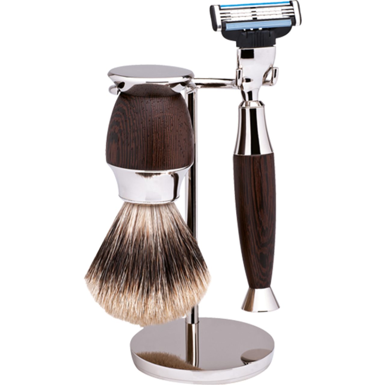 Anwendung | Rasierpinsel gut anfeuchten und in einer Rasierschale einen feinporigen Schaum "schlagen". Anschließend die Haarspitzen vorsichtig in die Creme tupfen und mit kreisenden Bewegungen auf die Haut auftragen. Kinn, Hals und Oberlippe besonders gründlich auf die Rasur vorbereiten. Die erste Rasur sollte immer mit der Richtung des Bartwuchses erfolgen, die zweite Rasur kann entgegen oder bei empfindlicher Haut seitlich zur Richtung des Bartwuchses erfolgen. Nach der Anwendung den Pinsel sorgfältig ausspülen. Das Restwasser ausschlagen und einmal in ein Handtuch drücken. Den Rasierpinsel dann mit den Haaren nach unten auf dem Halter trocknen lassen. Die Klingen ebenfalls gründlich unter fließendem Wasser spülen. |