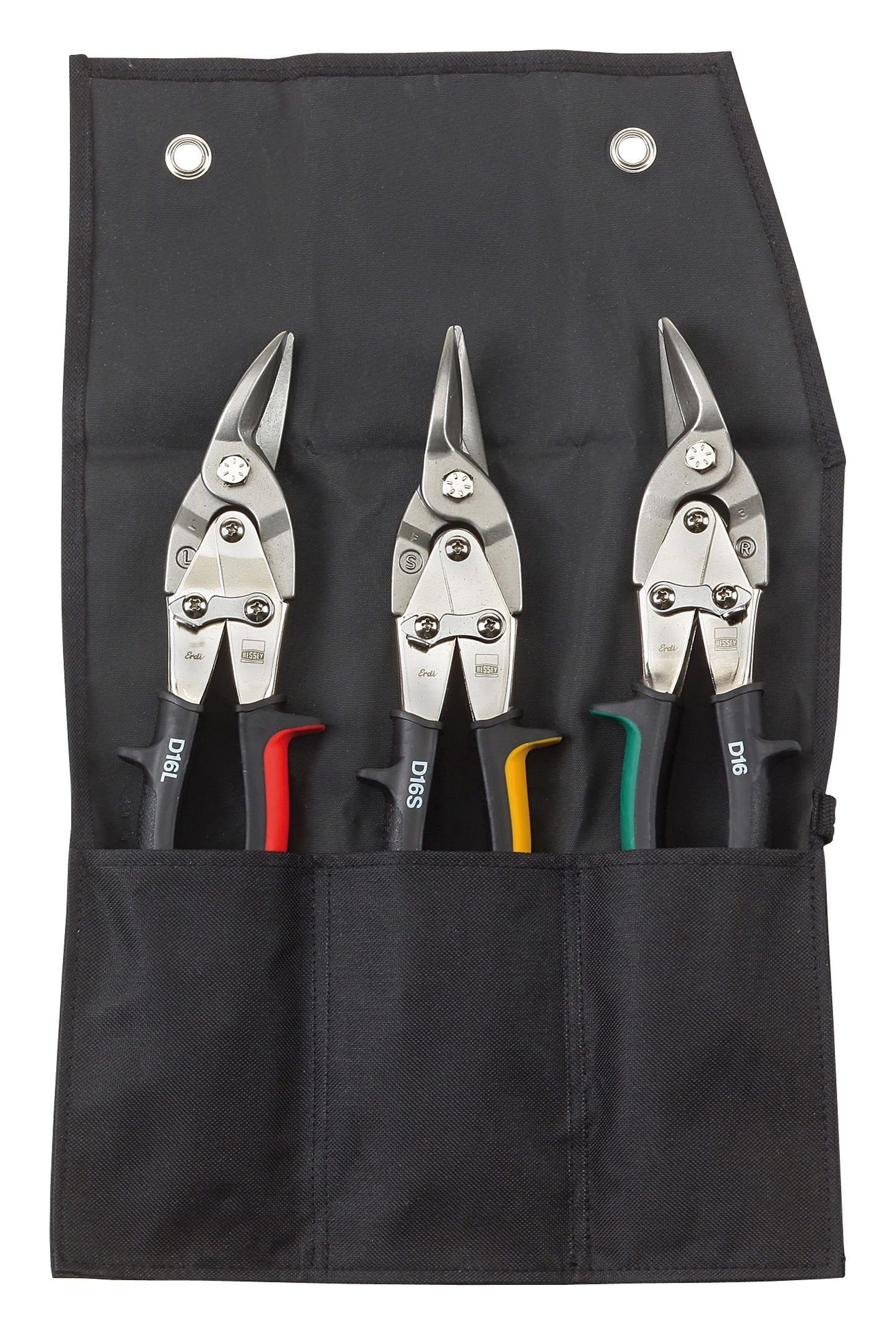 Jeweils 1 Figurenschere rechts- und linksschneidend mit abgewinkelten Schneiden und 1 Figurenschere linksschneidend mit gerader Schneide