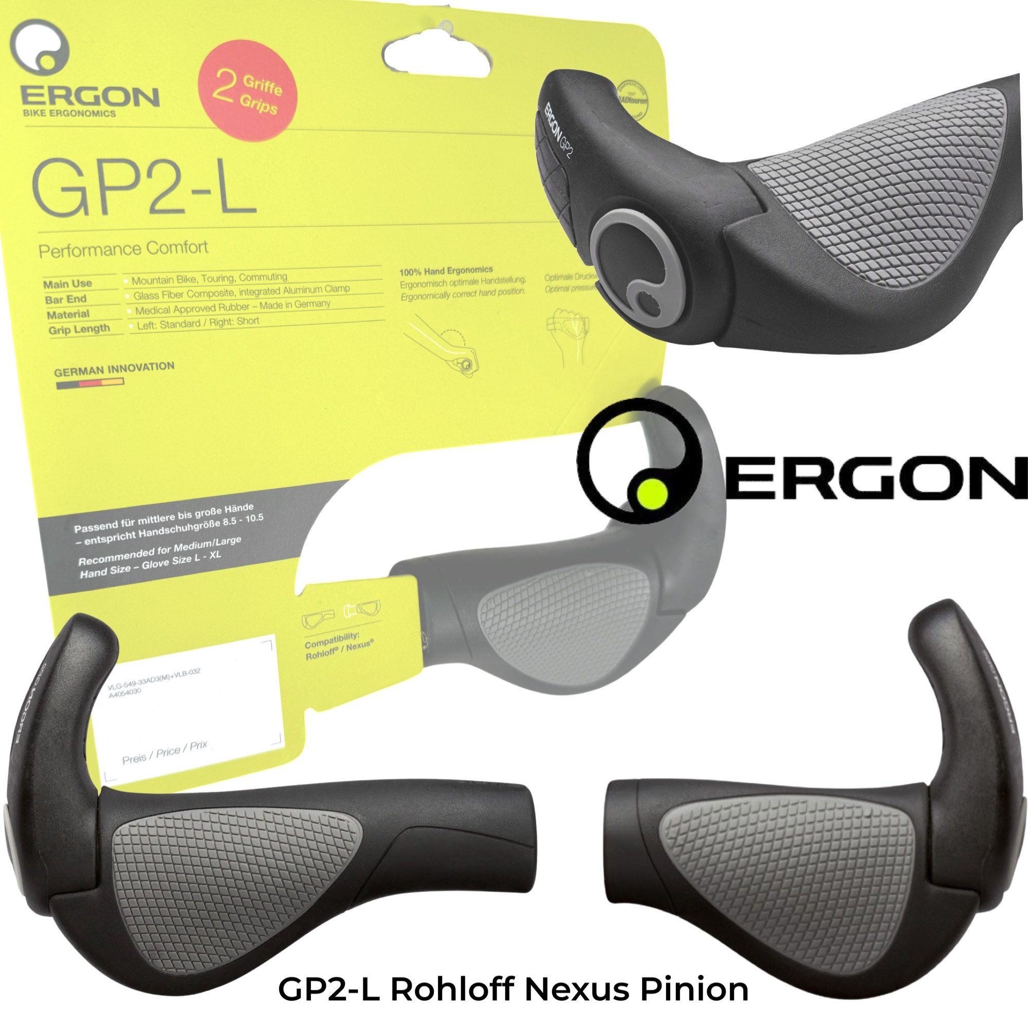 Die Ergon GP2-L Griffe sind ergonomische Fahrradgriffe, die für Komfort und Haltbarkeit ausgelegt sind. Sie sind in verschiedenen Вариантыn erhältlich, darunter auch Modelle, die speziell für den Einsatz mit Rohloff, Nexus oder Pinion Nabenschaltungen entwickelt wurden. Diese Griffe sind darauf ausgelegt, eine gute Handposition und Haltbarkeit zu bieten, insbesondere für Radfahrer, die lange Strecken fahren oder Touren unternehmen.