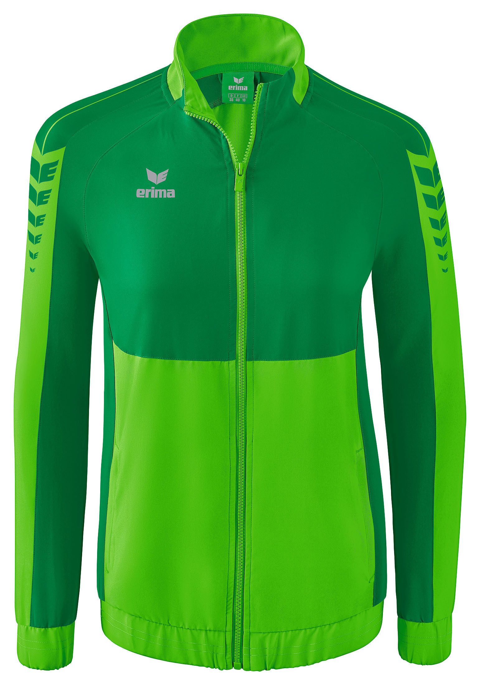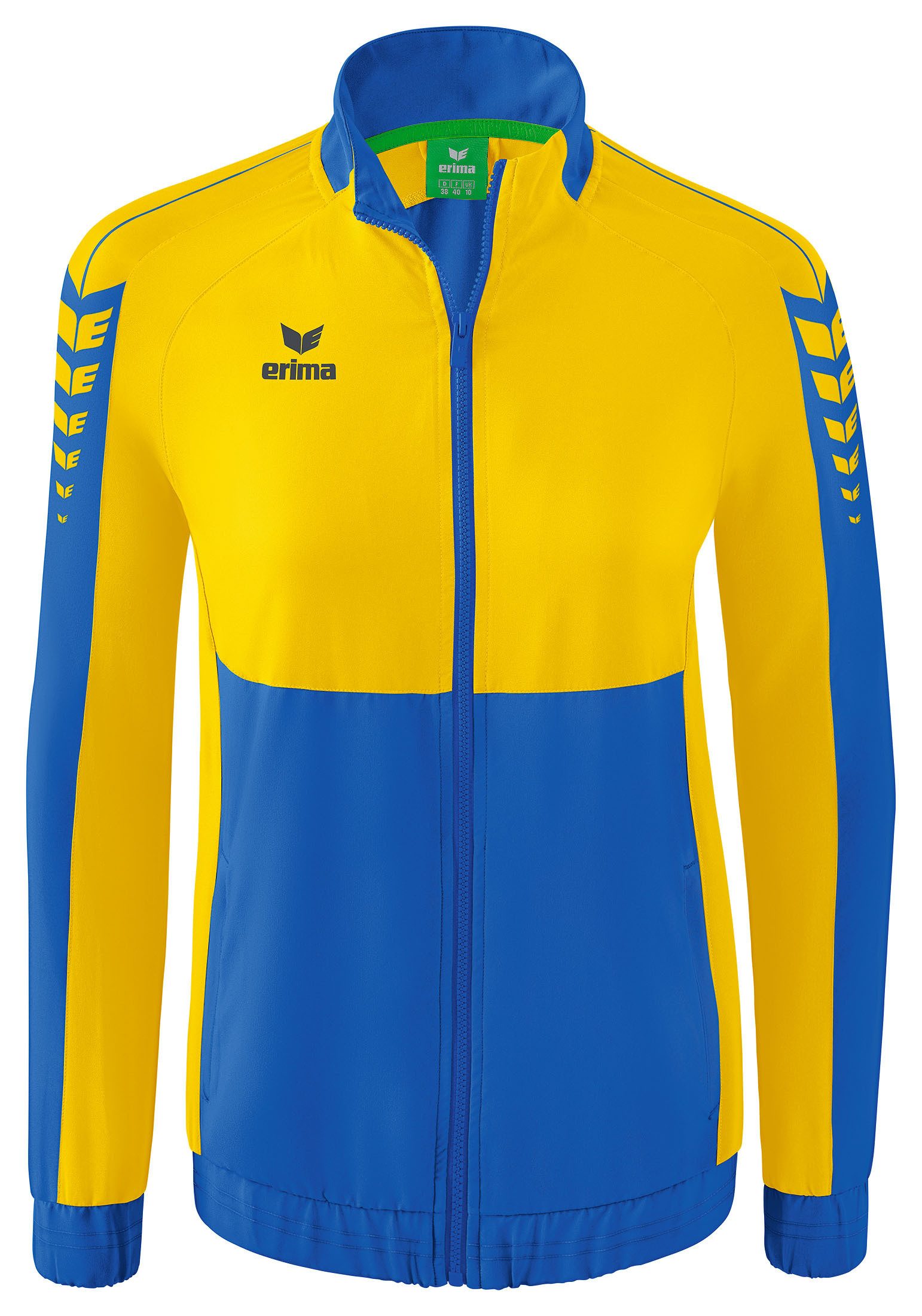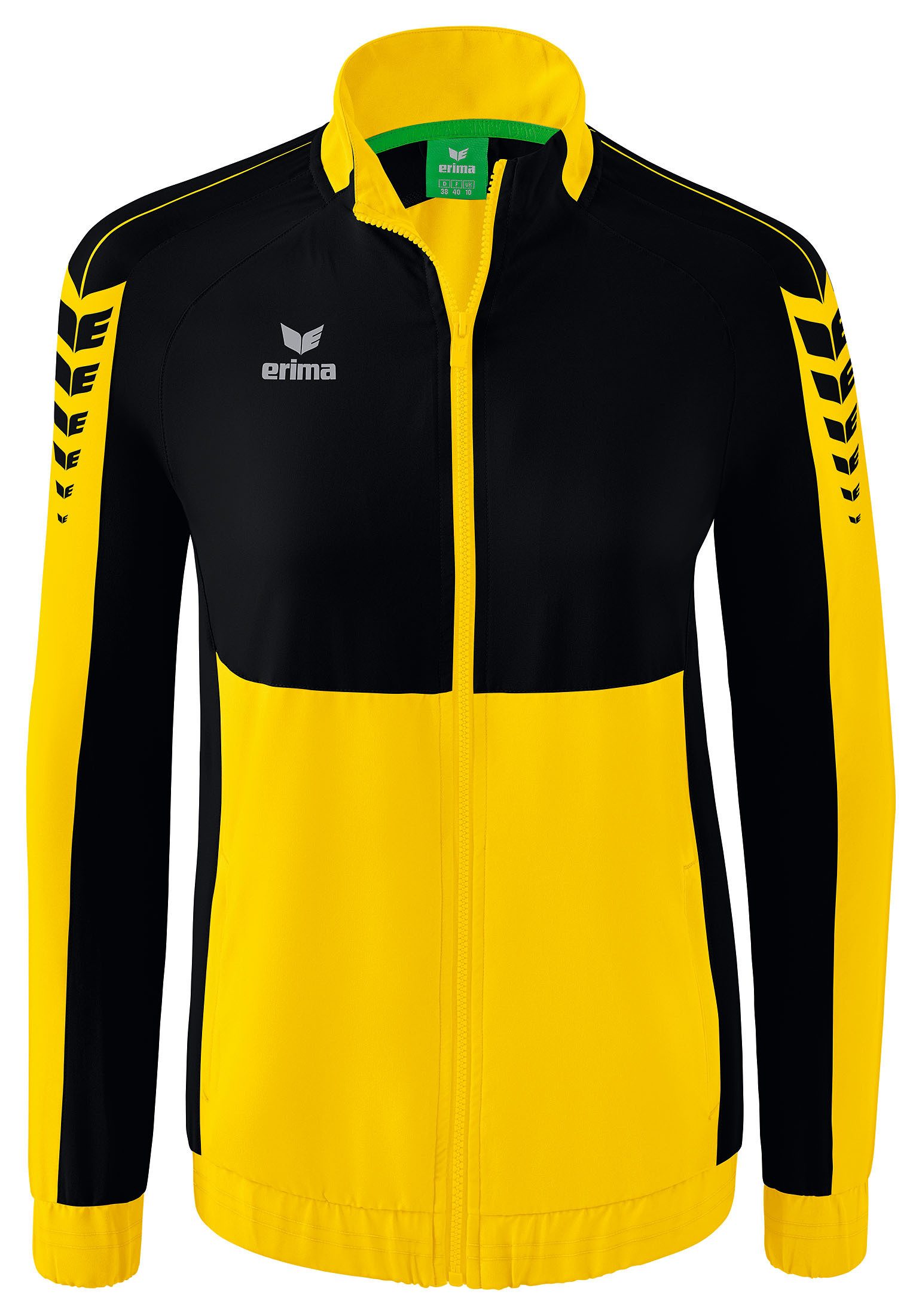 Mit dieser Präsentationsjacke legen du und dein Team beim nächsten Spiel einen einheitlichen Auftritt hin. Das sehr leichte, elastische Funktionsmaterial sorgt dabei für einen hohen Tragekomfort. Die Präsentationsjacke im stylischen Look unserer Six Wings Teamline ist dank der großen Farbauswahl hervorragend für Teams oder ganze Vereine geeignet. Außerdem lässt sie sich problemlos veredeln. Elastische Bündchen an den Ärmeln sowie dem Saum, der Stehkragen und die seitlichen Reißverschlusstaschen machen die Jacke zu einem wahren Must-have. Abgerundet wird sie durch einen taillierten Schnitt, der für eine schöne Silhouette sorgt.