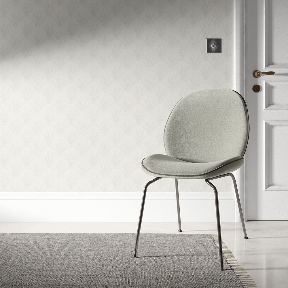 Diese Tapete aus der vierten Ausgabe der Kollektion ELLE Decoration bringt den Chic und den Charme der Metropole Paris in jeden Raum. Lasse dich mit der Tapete in die Welthauptstadt der Mode entführen, welche das einzigartige Lebensgefühl der Straßen rund um die Champs Elysees an deine Wände bringt. Die Vliestapete 10451-31 zeigt ein Art Deco Motiv mit Fächern in weiß und Cremetönen mit Glitzer-Effekt. Entdecke auch die Впередen Tapeten aus der Kollektion von ELLE Decoration.