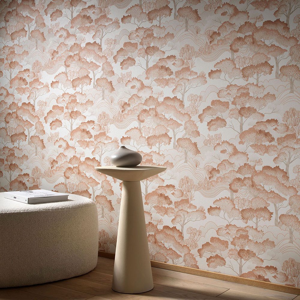 Diese Tapete aus der vierten Ausgabe der Kollektion ELLE Decoration bringt den Chic und den Charme der Metropole Paris in jeden Raum. Lasse dich mit der Tapete in die Welthauptstadt der Mode entführen, welche das einzigartige Lebensgefühl der Straßen rund um die Champs Elysees an deine Wände bringt. Die Vliestapete 10448-13 zeigt eine Landschaft mit Bäumen und verschiedenen Pflanzen in weiß und Orangetönen mit Glitzer-Effekt. Entdecke auch die Впередen Tapeten aus der Kollektion von ELLE Decoration.