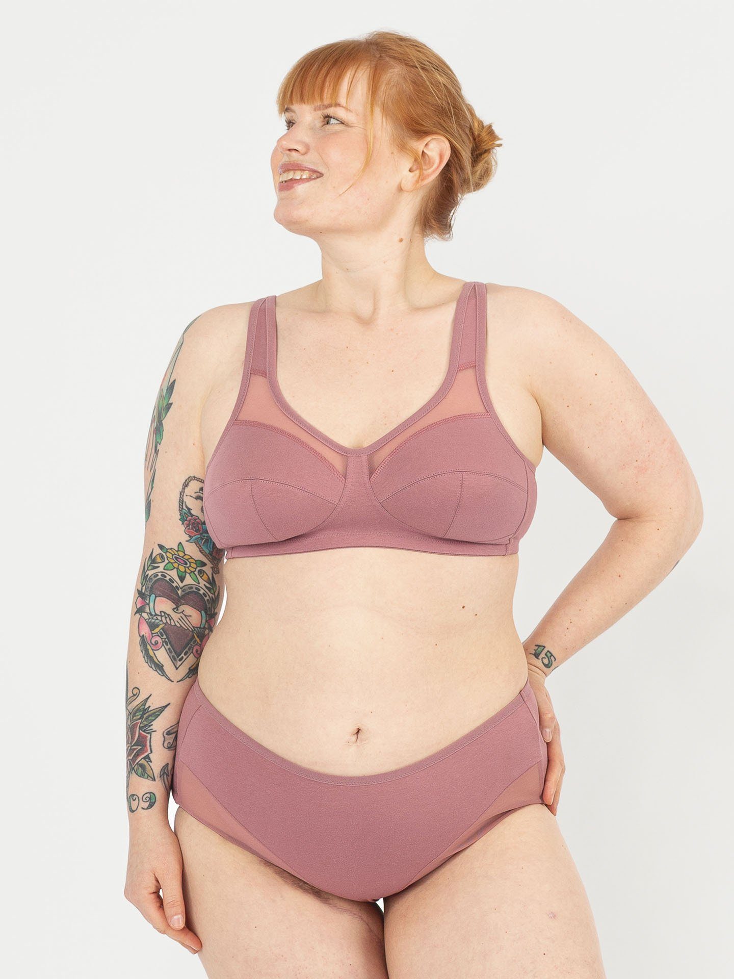 Materialzusammensetzung | 81% Baumwolle (kbA), 13% Polyamid, 6% Elasthan / Tüll: 73% Polyamid (Reco® Nylon), 27% Elasthan |