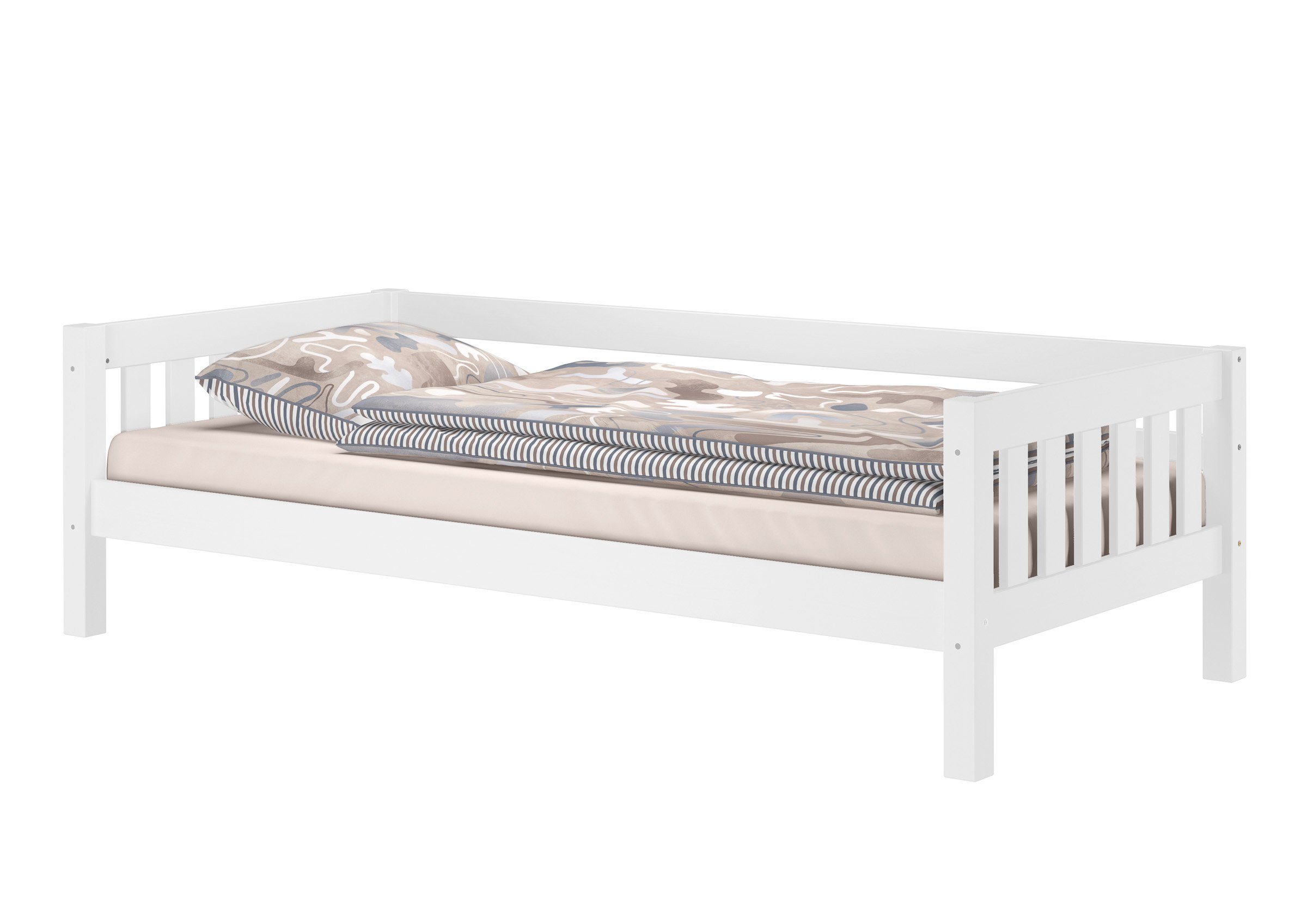 Dieses gemütliche Massivholzbett besticht durch das vielfältig wählbare Zubehör, wie die aufsteckbare Kindersicherung, um ein Herausfallen für unruhig schlafende Kleinkinder zu verhindern. Beliebt sind auch die verschiedenen Bettkasten-Systeme, wie Staukästen (einteilig oder zweiteilig) für Spielzeug, Teddys oder Bettwäsche, oder gleich ein Gästeschlafkasten wenn Nachbars-Kinder zur Übernachtungsparty kommen.