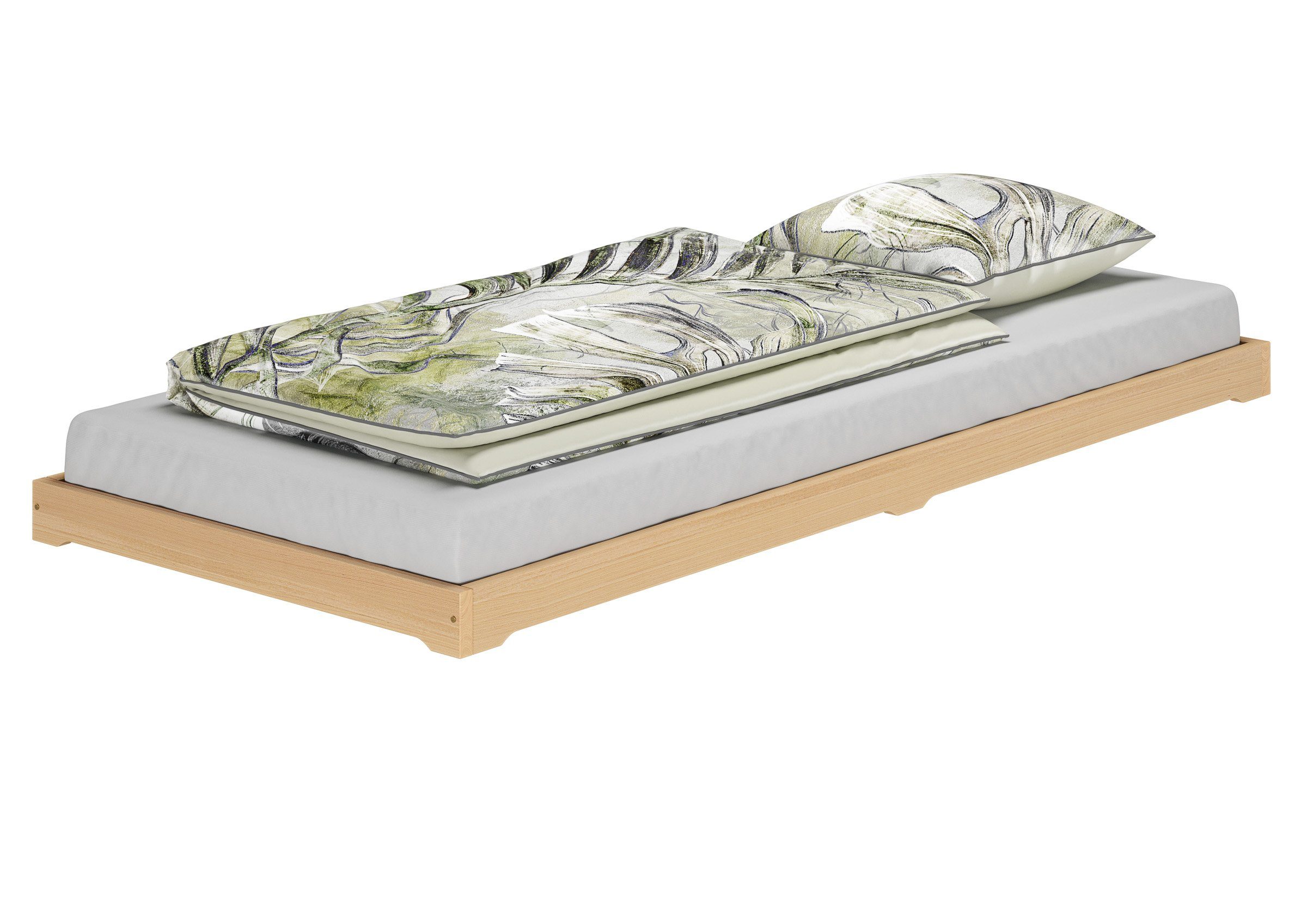 Holz aus europäischen Forsten mit schonender Waldwirtschaft bildet die Grundlage für dieses schöne Einzelbett. Durch die geringe Bauhöhe lässt es sich auch unter größere Betten schieben und als Gästebett schnell einsatzfähig machen.