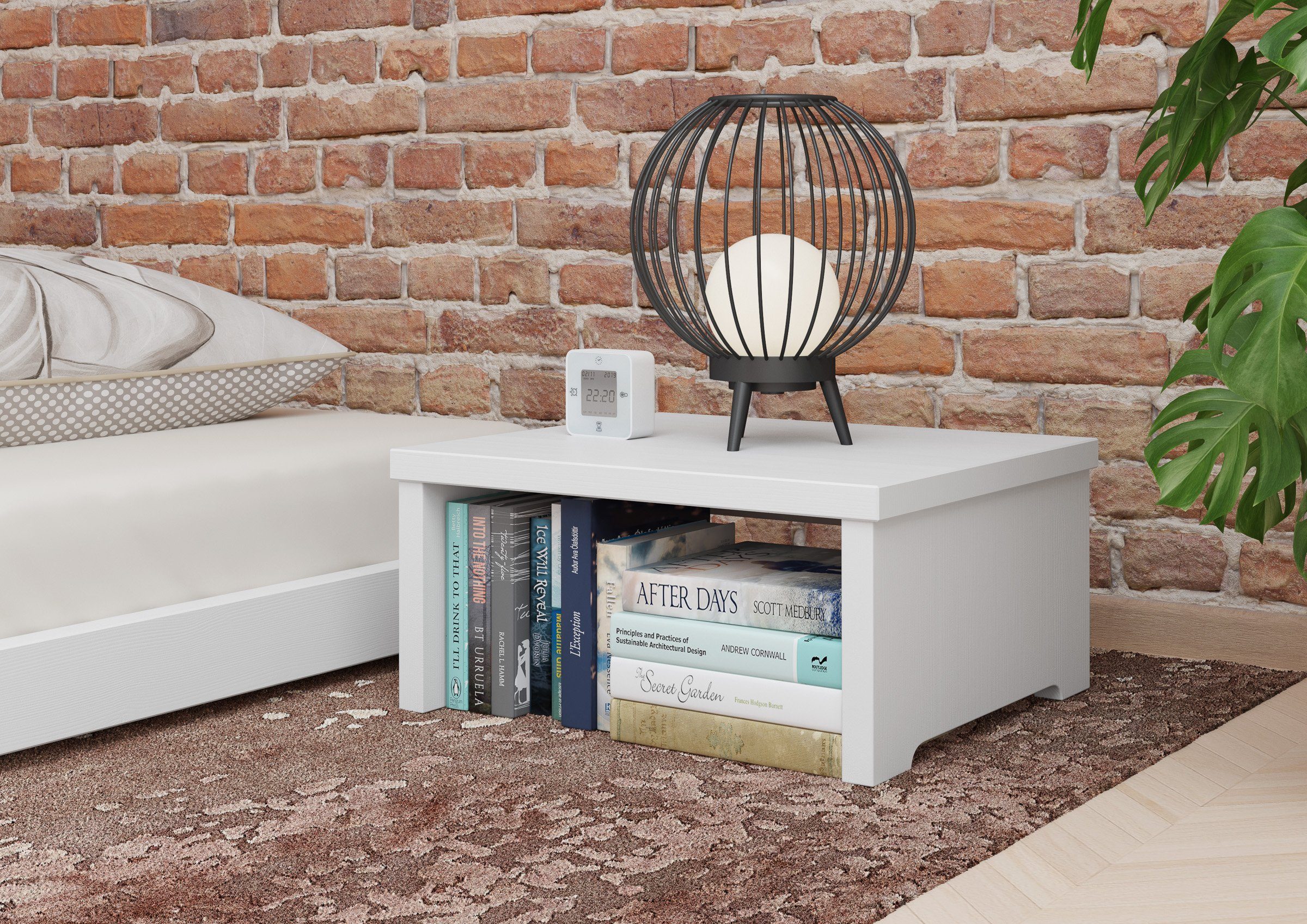Stabile niedrige Bettkommode ohne Schublade in Kiefer weiß