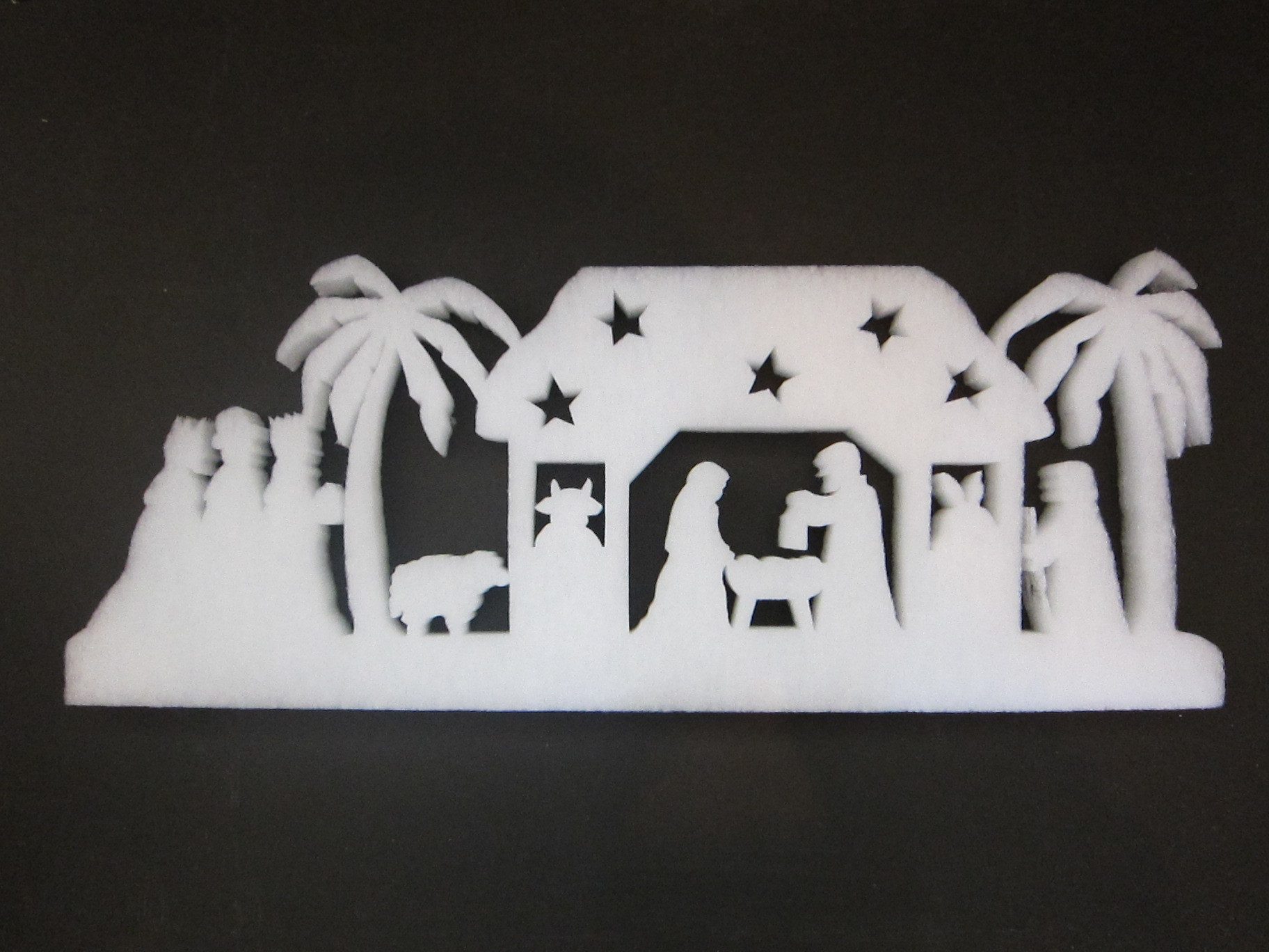 Winterdeko KRIPPEN-WELT. 63x25cm. Aus SCHNEEWATTE, 4cm dick.