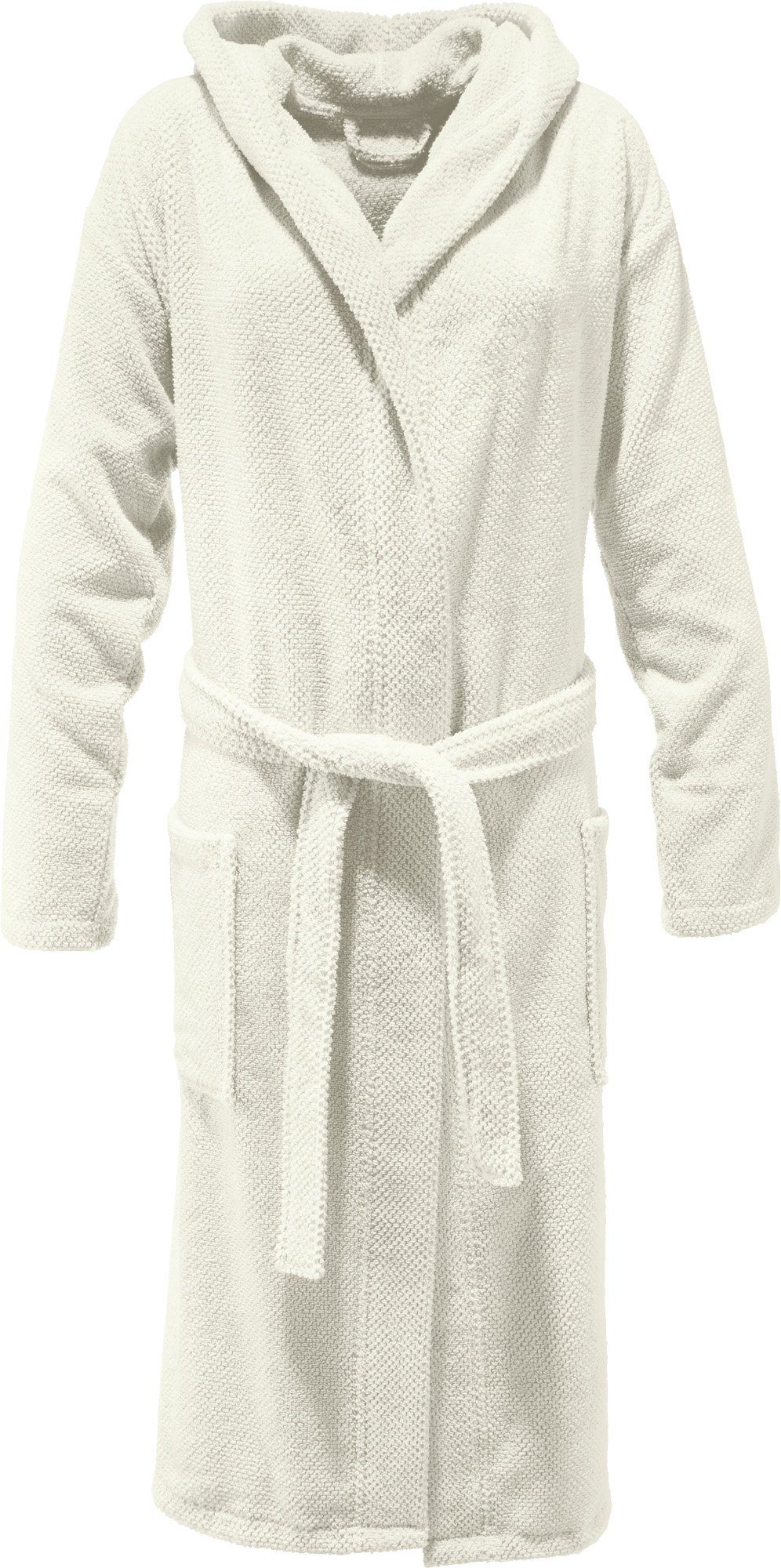 Erwin Müller Walk-Frottier Unisex-Bademantel "Achberg". Spüren Sie den Unterschied! Die besondere Reiskorn-Struktur schaut nicht nur äußerst attraktiv aus, sie verwöhnt zudem die Haut mit einem angenehmen Massage-Effekt. Gefertigt wurde die hochwertige Serie aus einer feinfädigen Micro-Baumwoll-Qualität. Durch ein neuartiges Spinnverfahren wird der Baumwollfaden umsponnen, dadurch entsteht nach einem Erwärmungsprozess ein Baumwollgarn mit Hohlraum. Mit dichten, kuscheligen Schlingen gewebt, so bekommt das Frottier ein enormes Volumen und einen flauschig-weichen Griff. Außerdem ist das Frottiergewebe unvergleichlich saugfähig, hautsympathisch und bleibt auch nach vielen Wäschen formstabil. Eine Luxus-Qualität der absoluten Spitzenklasse. Mit Kapuze, zwei aufgesetzten Taschen und Bindegürtel. Bitte beachten Sie: Den Bademantel vor der ersten Benutzung unbedingt waschen. Die Passform und die Wertigkeit kommen erst hierdurch richtig zur Geltung.
