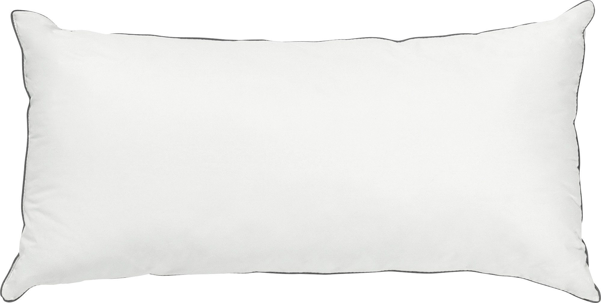 Erwin Müller Kissen "Main". Das Kissen kombiniert mit seiner innovativen Füllung die Vorzüge natürlicher Daunen mit der Unempfindlichkeit der Kunstfaser und der Stützkraft des Viskoschaums. Feinste Baumwolle des Bezugs umschließt die synthetische Hightech-Faser. Die speziell für den Bettwarenbereich entwickelte Faser besteht aus zwei Komponenten, so erhält sie ihre typische Spiralform. Zudem durchziehen Luftkanäle die Fasern und sorgen für eine überdurchschnittliche Wärmeleistung und einen extrem guten Feuchtigkeitstransport. Durch den besonderen Aufbau wird das spezifische Gewicht drastisch reduziert und ein erstaunliches Füllvolumen erreicht. Die Faser hat außerdem eine enorme Rückstellkraft und ist dadurch extrem robust und waschstabil. Optisch akzentuiert von der farbigen Biese.