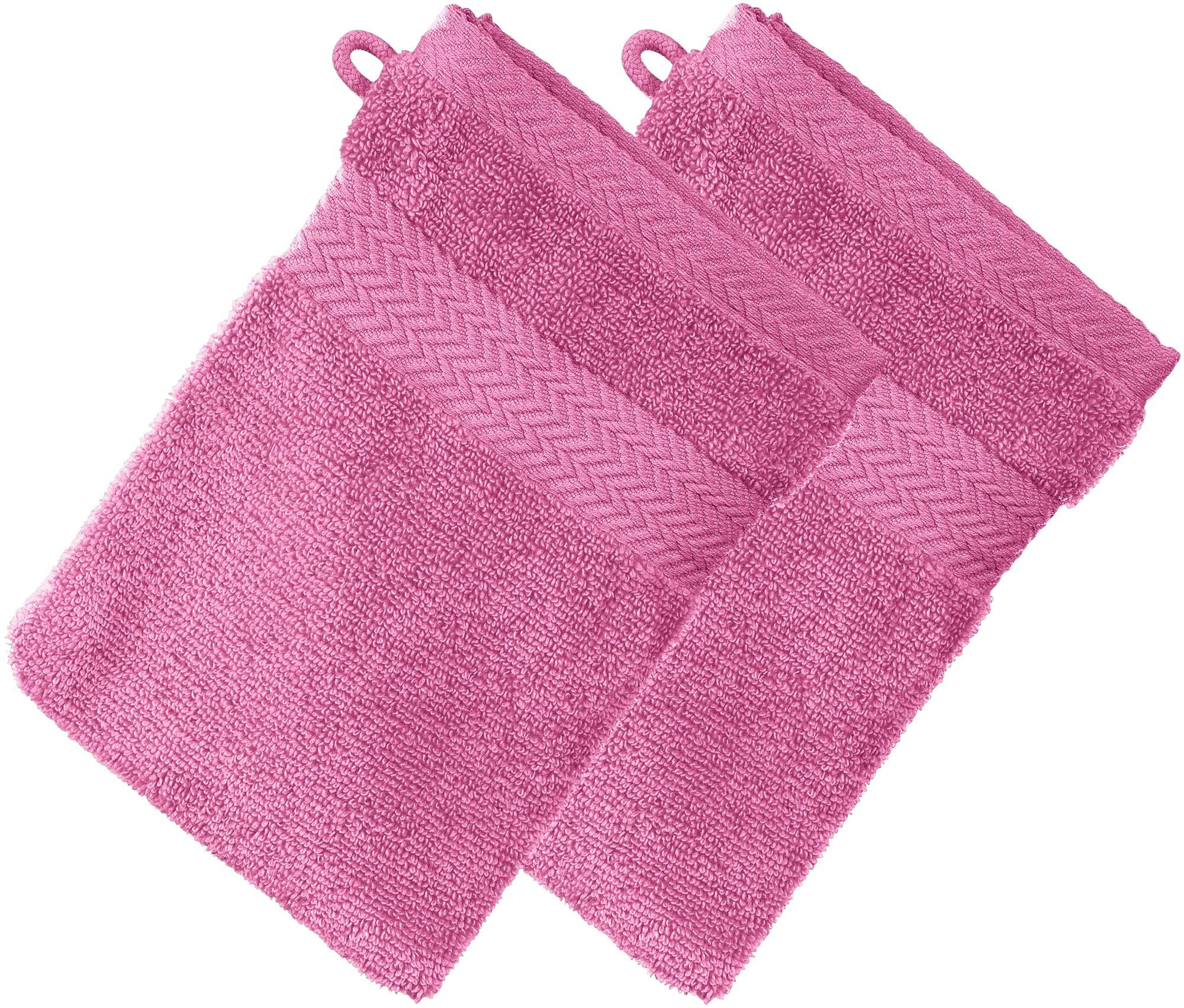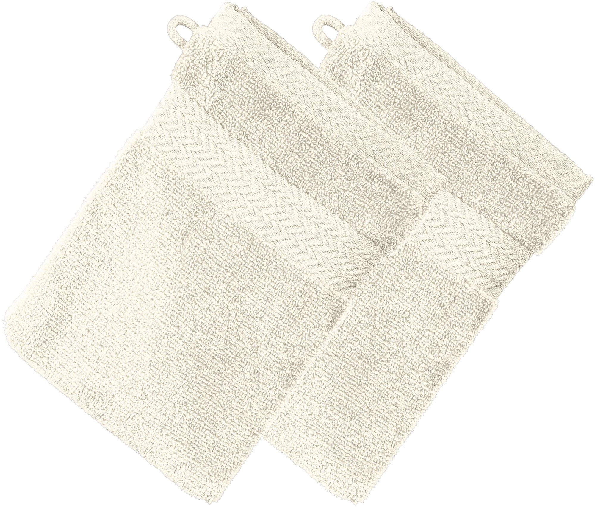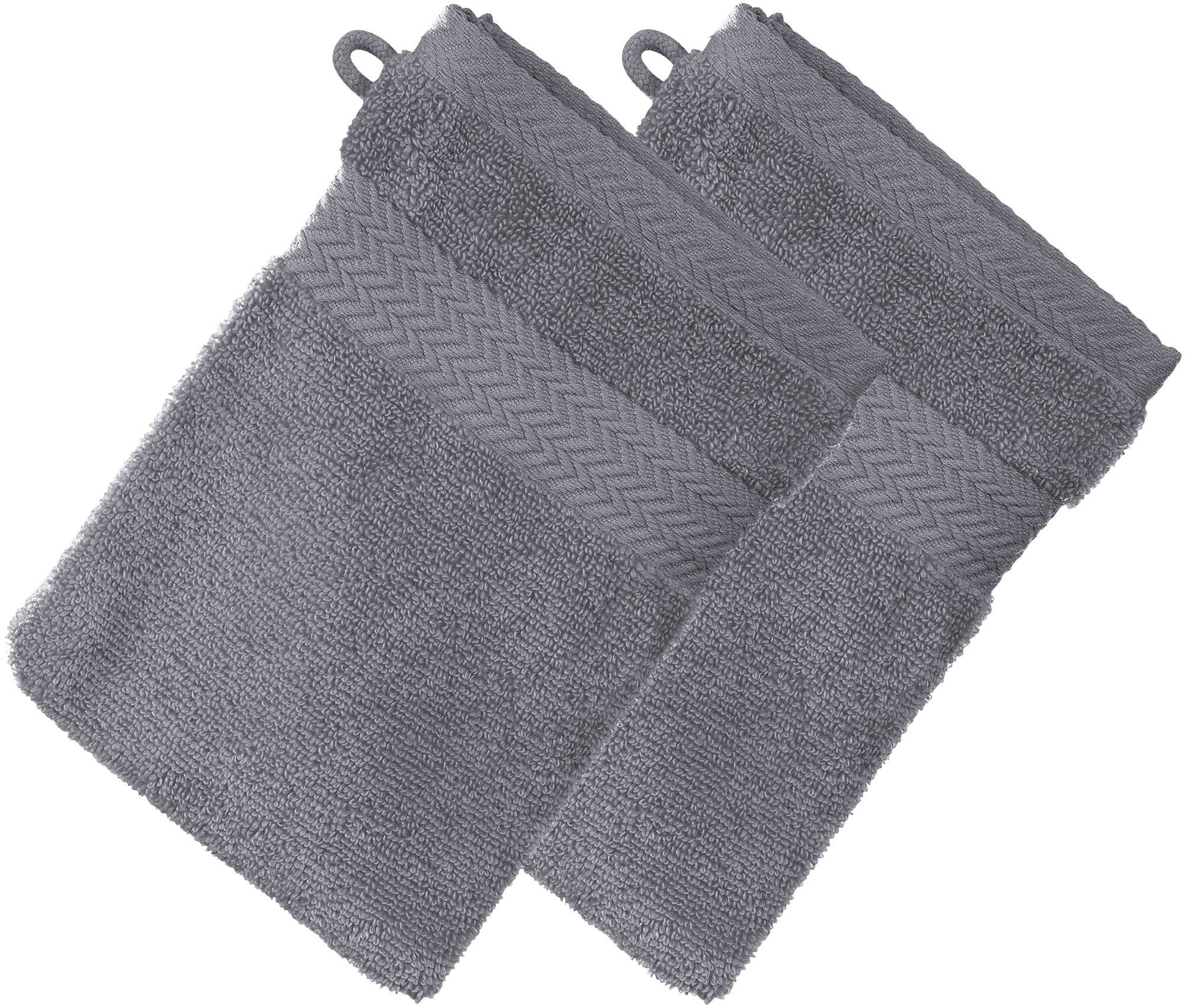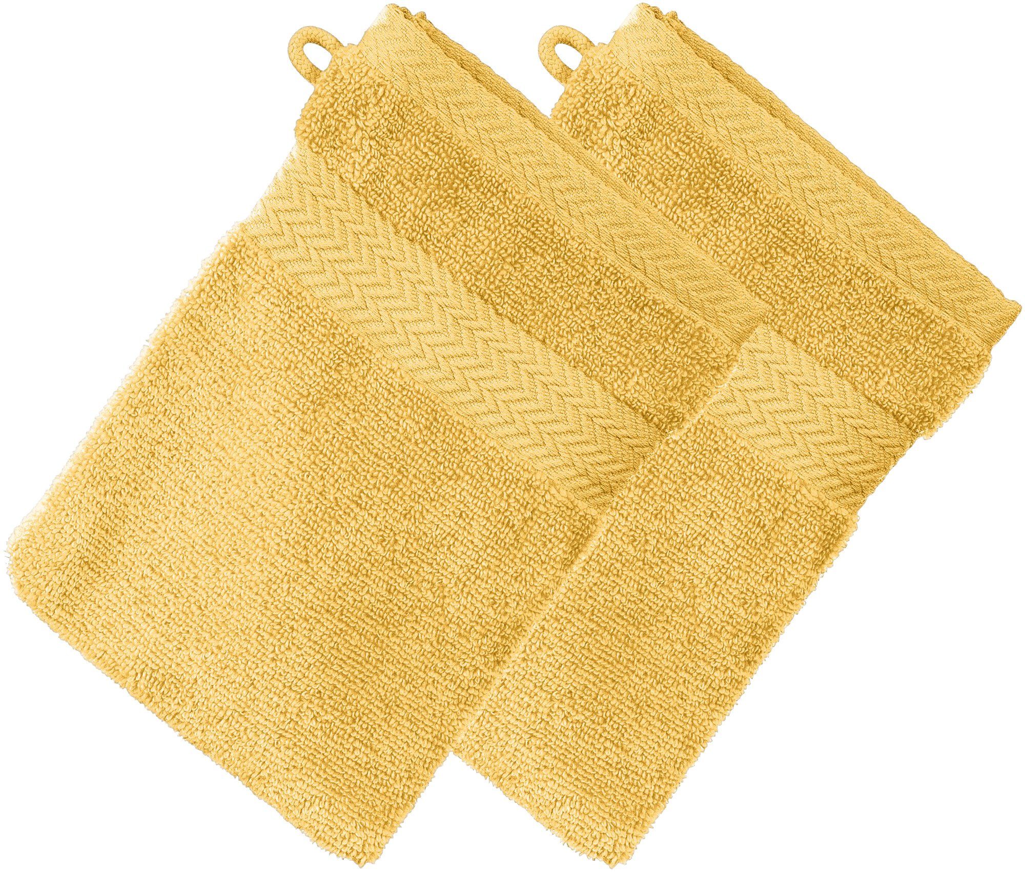 Erwin Müller Walk-Frottier Waschhandschuh "Friedrichshafen" im 2er-Pack. Die hochwertige Serie besteht aus einer feinfädigen Micro-Baumwoll-Qualität, akzentuiert von zwei eingewebten Bordüren. Durch ein neuartiges Spinnverfahren wird der Baumwollfaden umsponnen, dadurch entsteht nach einem Erwärmungsprozess ein Baumwollgarn mit Hohlraum. Mit dichten, kuscheligen Schlingen gewebt, so bekommt das Frottier ein enormes Volumen und einen flauschig weichen Griff. Außerdem ist das Frottiergewebe unvergleichlich saugfähig, hautsympathisch und bleibt auch nach vielen Wäschen formstabil. Eine Luxus-Qualität der absoluten Spitzenklasse.