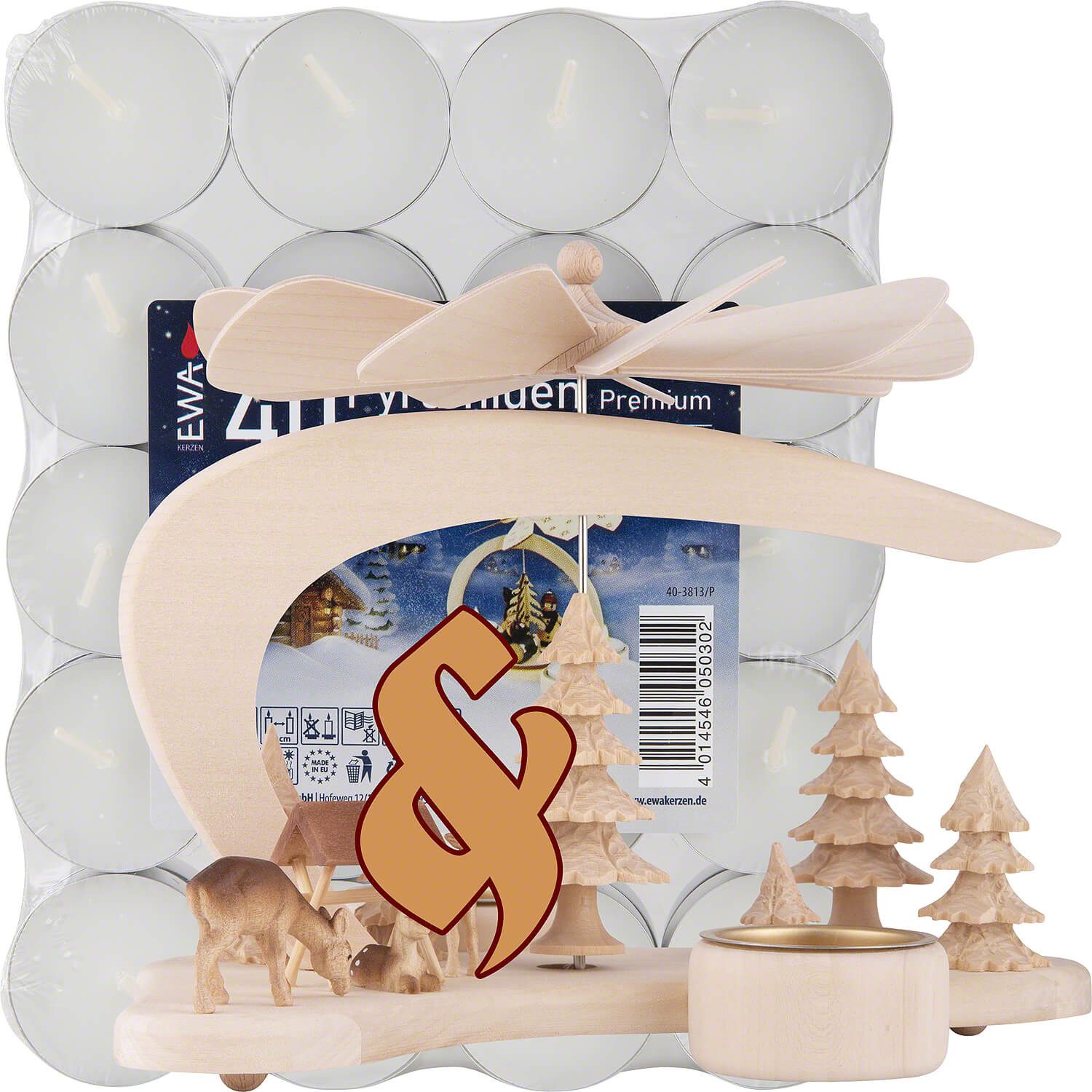 Weihnachtspyramide Set 1-stöckige Pyramide Rehfamilie und eine Packung Teelichter von Erz