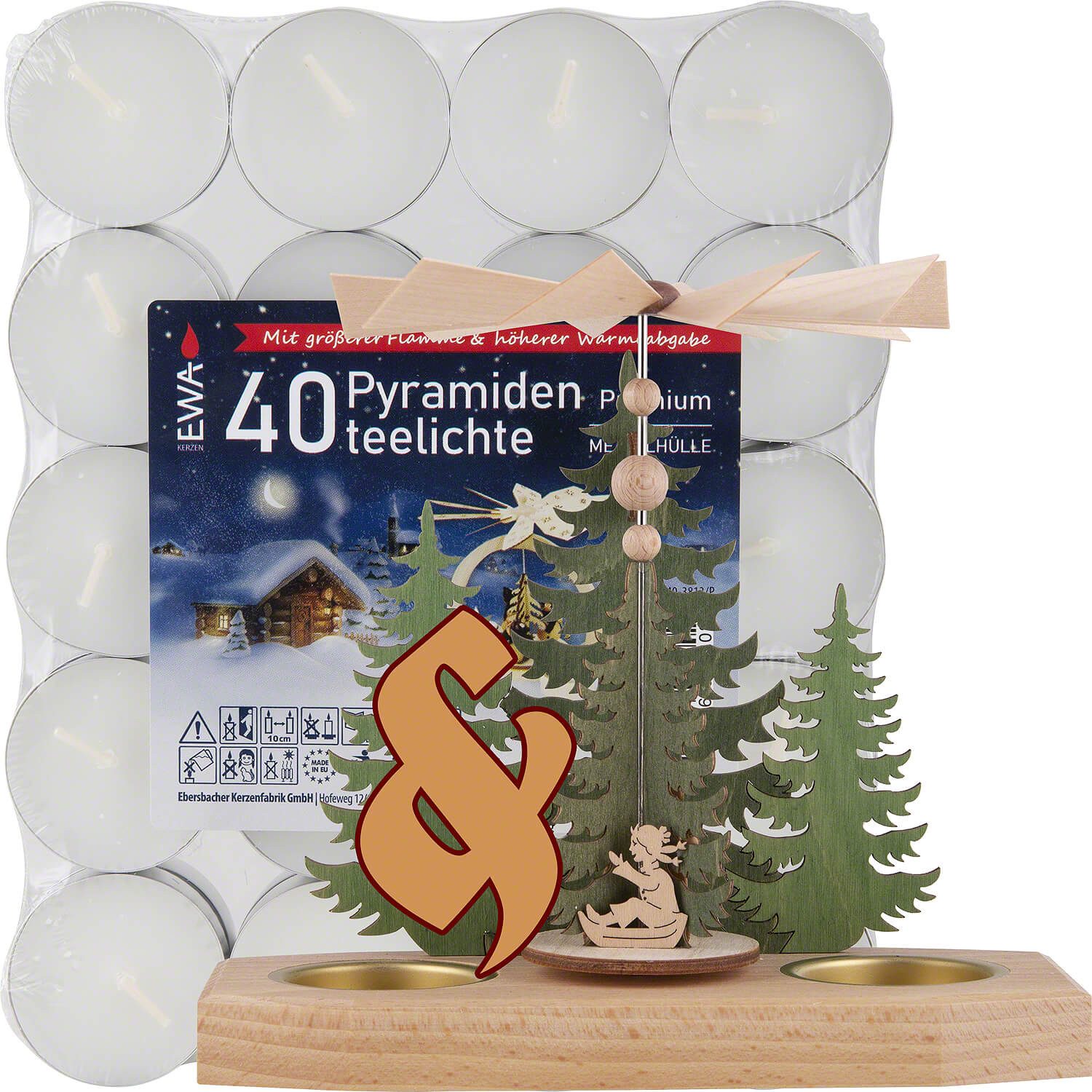 Exklusives Angebot im Erzgebirge-Palast Dieses Set enthält 1× 1-stöckige Pyramide Tannen - Winterkinder - 16,5 cm 1× Pyramiden-Teelichter Premium, 40 Stück Produktabbildungen sind nicht maßstäblich!