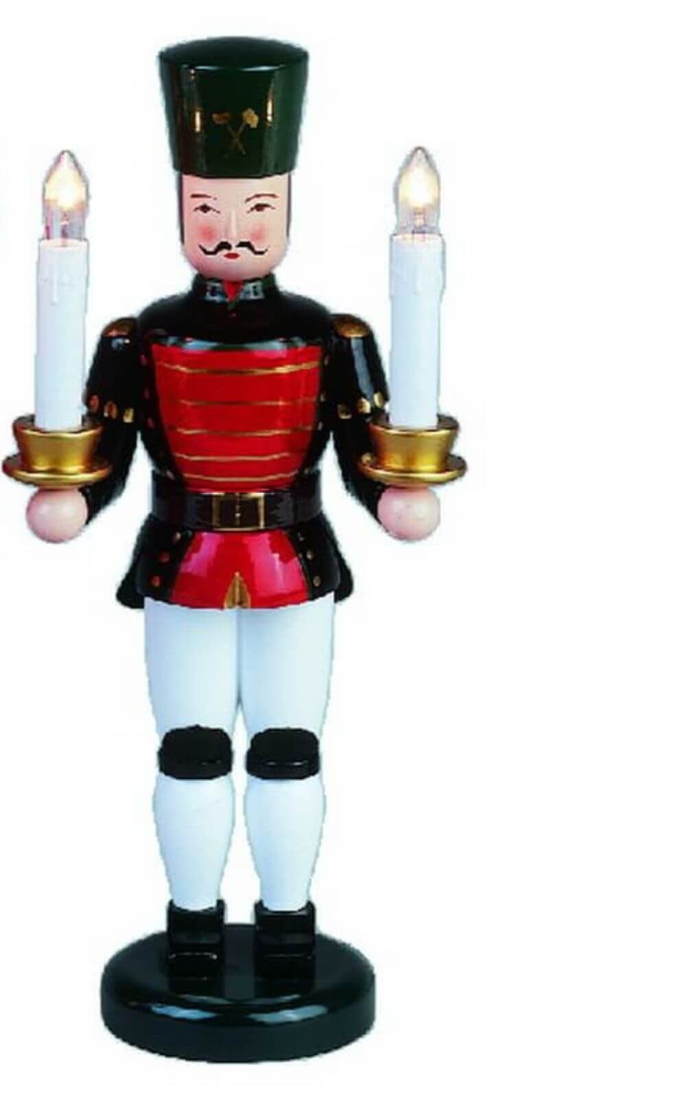 Der Bergmann farbig, elektrisch beleuchtet von Holzkunst Gahlenz GmbH RuT aus Oederan /OT Gahlenz im Erzgebirge, ist 34 cm groß.