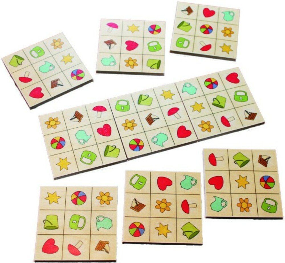 Neun Holzkärtchen 8 x 8 cm mit 9 verschiedenen Symbolen werden zu einem Sudoku zusammengefügt. Dabei muß jedes Symbol in jeder Zeile und in jeder Spalte genau einmal vorkommen. Es sieht einfacher aus, als es ist!