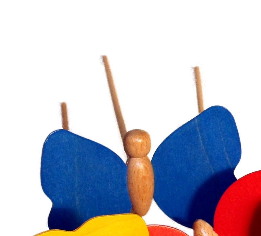 Holzspielzeug Holzschmetterling mit Stecker blau Holzschmetterling mit bunten Flügeln und Stab 30cm zum befestigen blau 9 x 7 cm Schmetterling 9 x 7cm, Stab Длина 30 cm NEU |