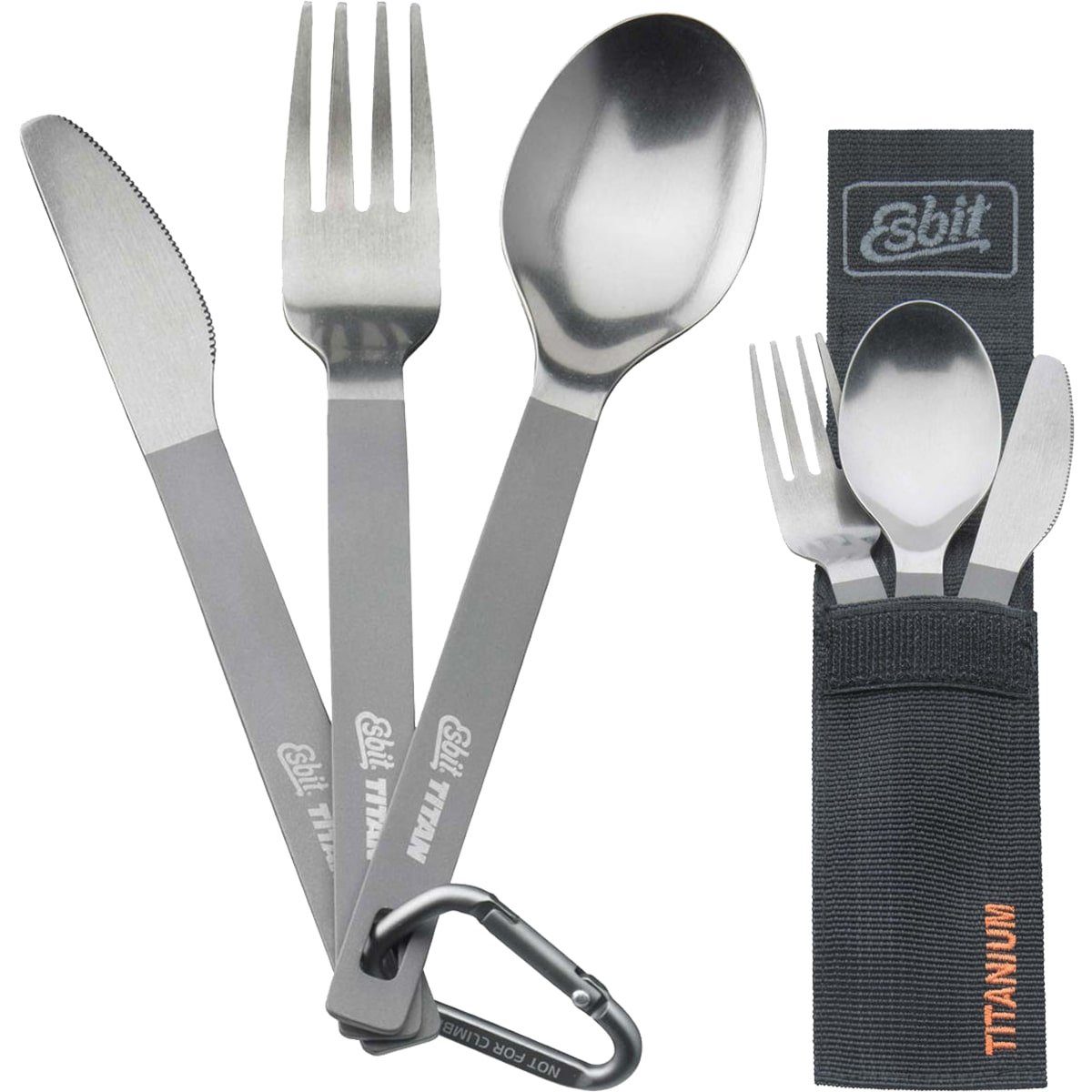 Mit diesem 3-teiligen Besteck-Set sind Sie wirklich für jede kulinarische Outdoor-Herausforderung gewappnet. Es ist aus super-leichtem Titan und besteht aus Messer, Gabel und Löffel. Die Длина beträgt ca. 15,5 cm, die Ess- bzw. Schneidefläche ist poliert. Zum Set gehört eine hochwertige Nylontasche mit Gürtellasche. Dieses Besteck wird auch von der Bundeswehr oder anderen Armeen verwendet.