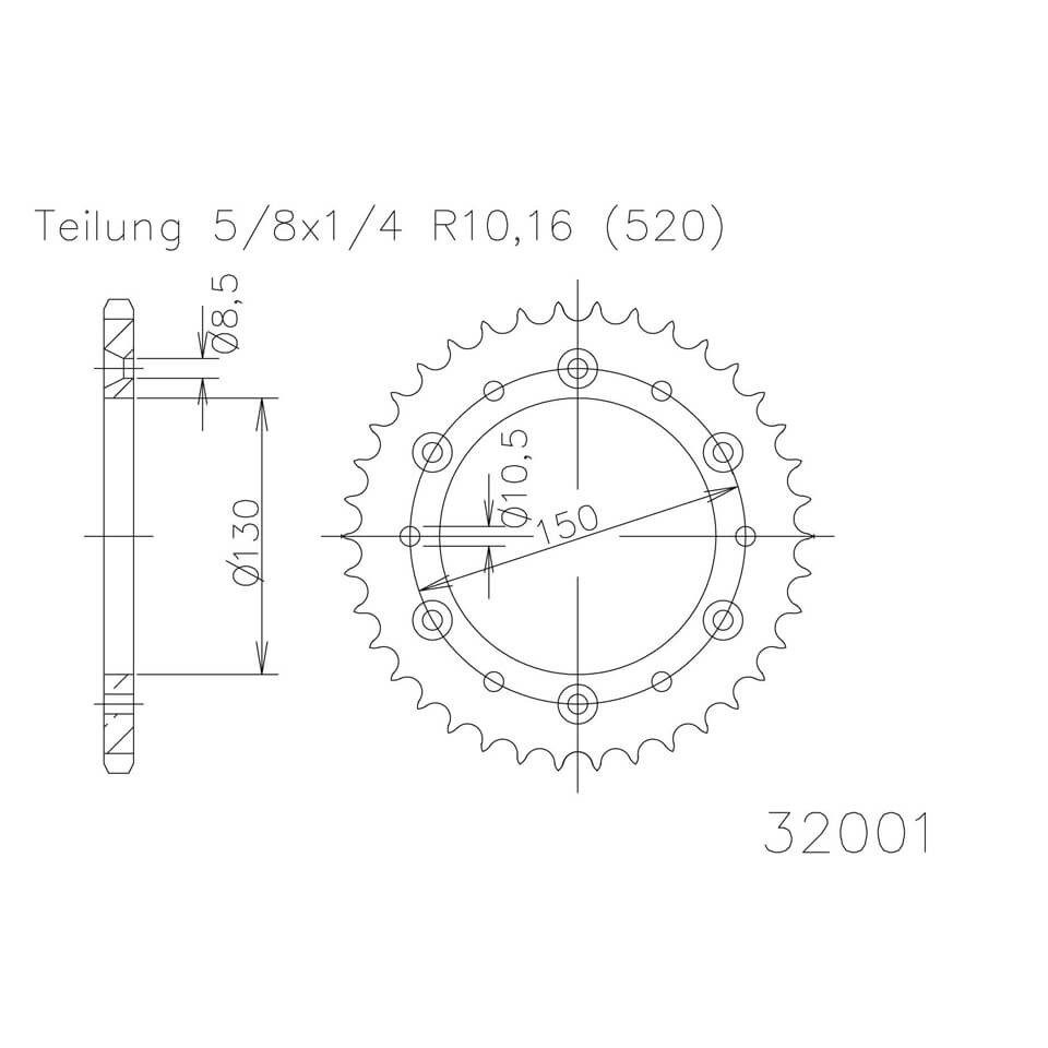 Kettenrad 48 Zähne Stahl 520er Teilung (5/8x1/4)