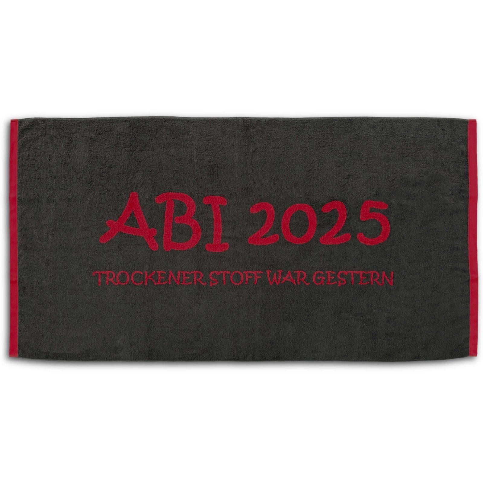 Das Abi ist geschafft, dann beginnt jetzt die schöne Zeit Ihres Lebens! Genießen Sie den Sommer am Pool, im Schwimmbad oder am Strand mit dem farbenfrohen Strandlaken aus 100 Prozent Baumwolle in Jacquard Webart gefertigt. Der trendige Spruch -ABI 2025 TROCKENER STOFF WAR GESTERN- kommt bei allen Freunden super cool an und ist auf jeder Strandparty ein Highlight. Durch die Farben Anthrazit und Kaminrot wird dieses Badetuch das perfekte Accessoire für die nächste Fete! Das Badetuch ist das perfekte Geschenk zum bestandenen Schulabschluss. Überraschen Sie mit dem saugstarken und anschmiegsamen Badelaken ihre Kinder, Neffen, Nichten oder Enkel.